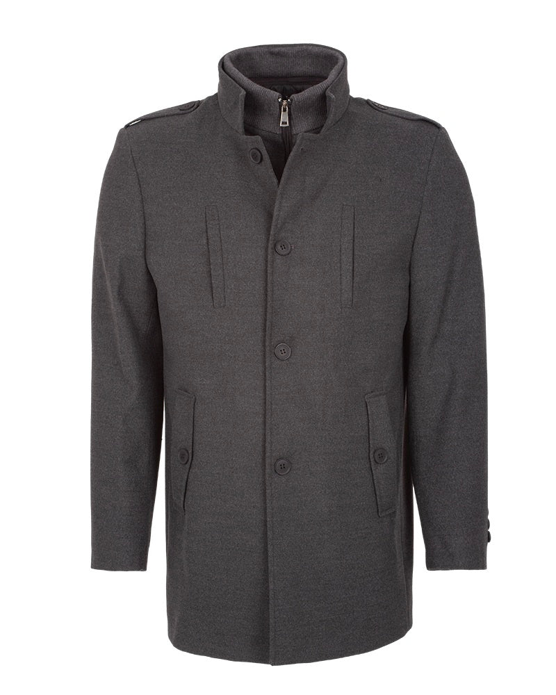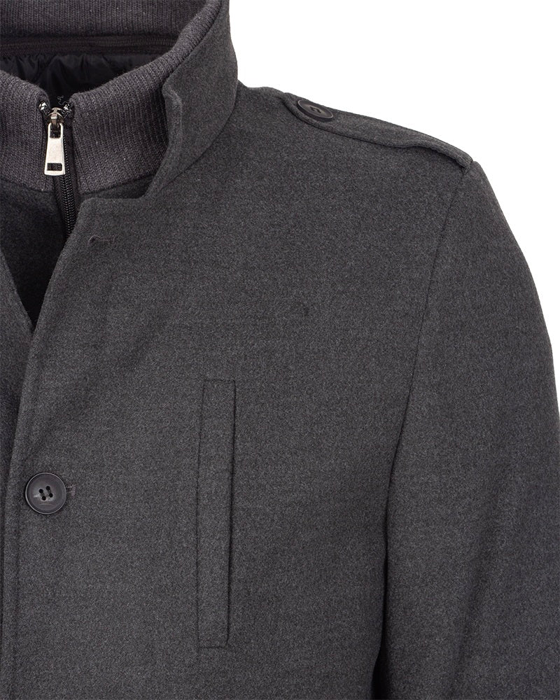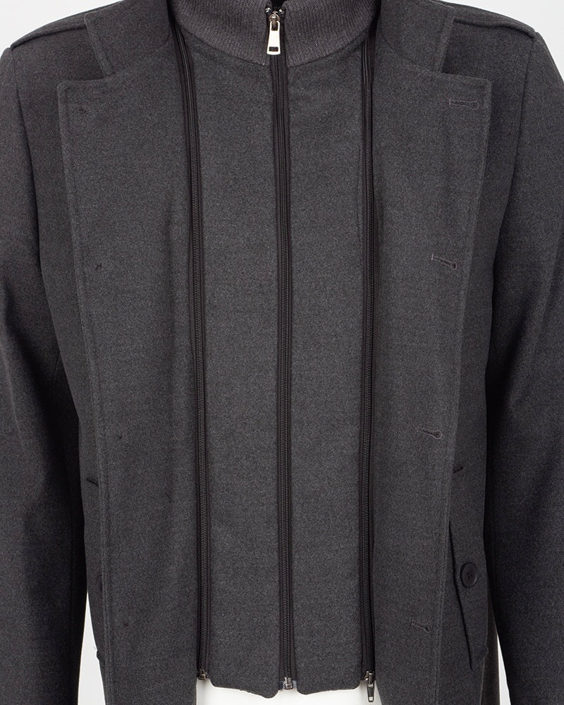 Anthracite Single Breasted Overcoat with Removable Quilted Insert
