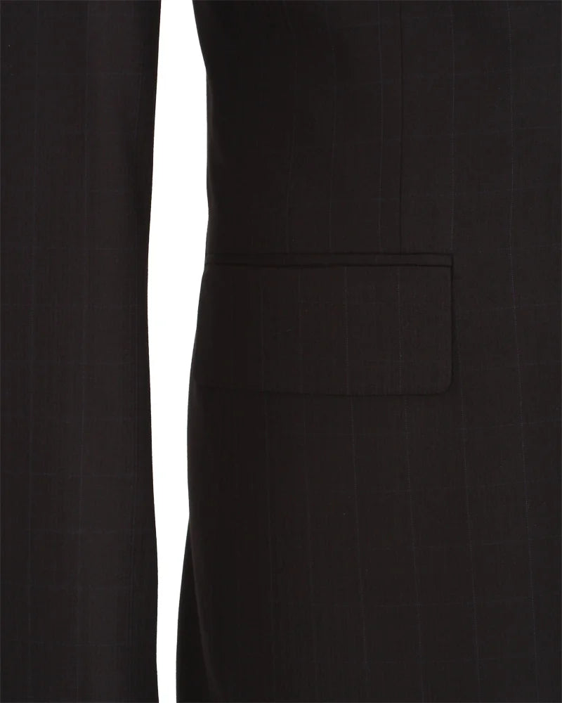Featuring a classic design, it includes a pocket tie and a two-button closure for a sophisticated look. The single vent adds to its tailored appeal, ensuring a flattering fit.