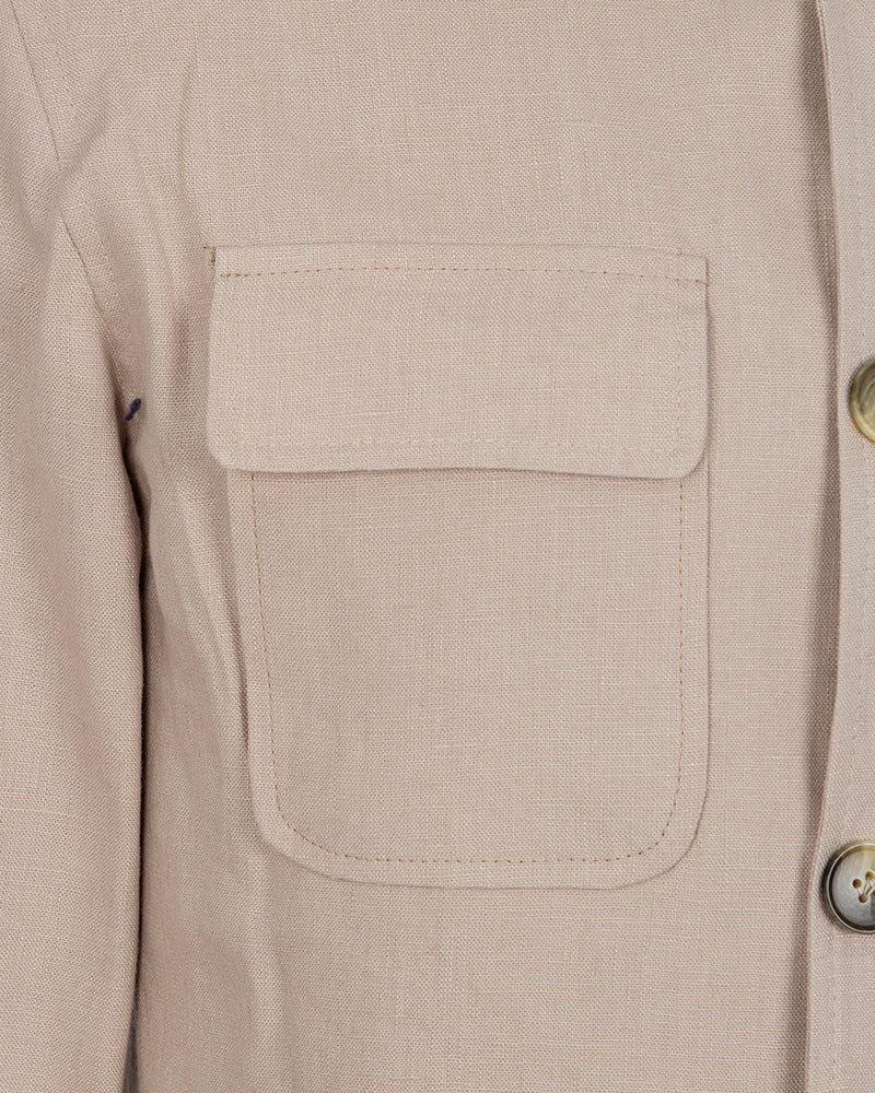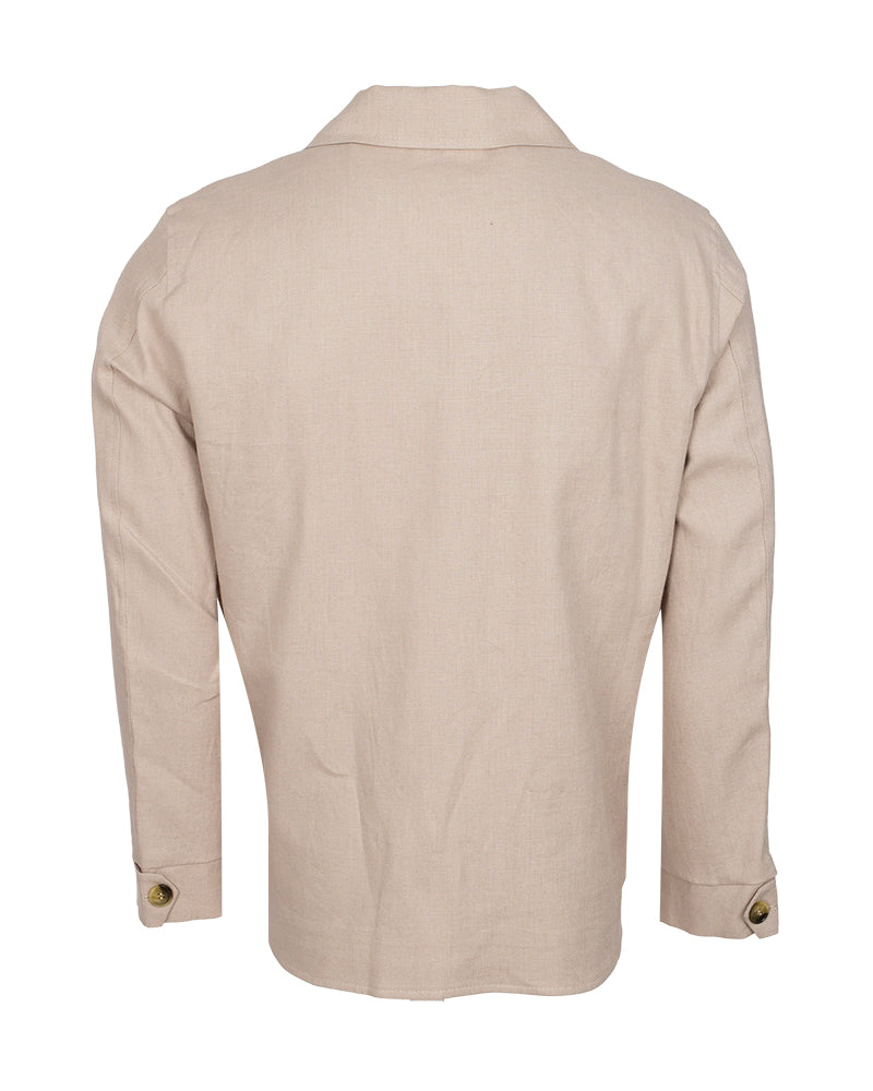 Beige Linen Utility Overshirt