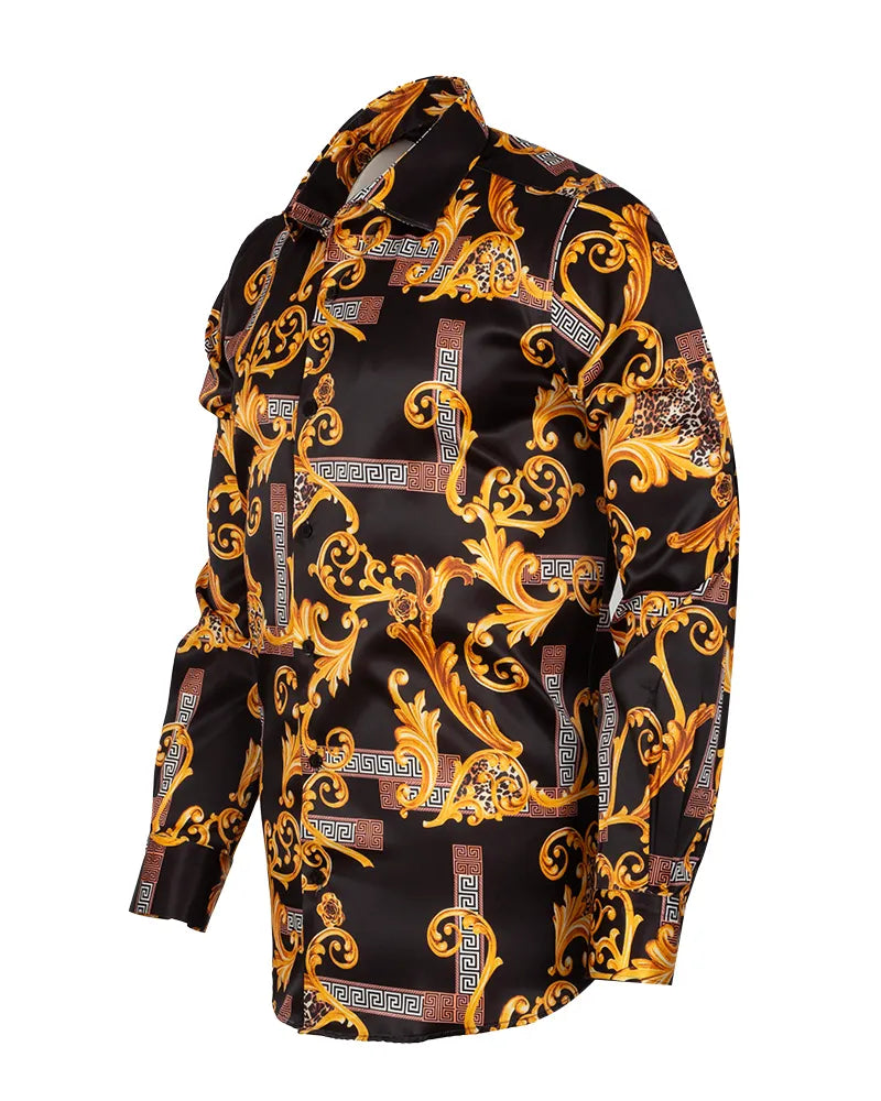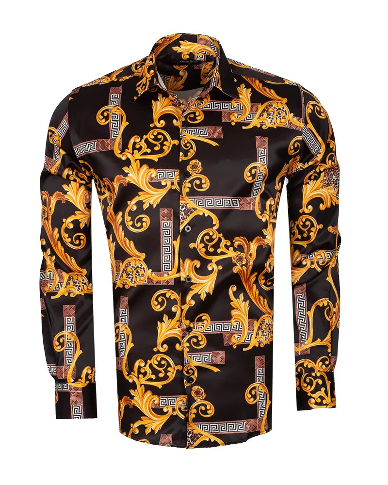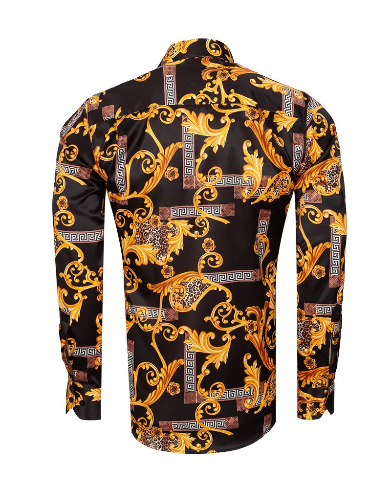 Introducing the Black Baroque Paisley Print Men`s Shirt, a perfect blend of elegance and comfort. This shirt features a stunning Roman ornament print that adds a touch of sophistication to any outfit.