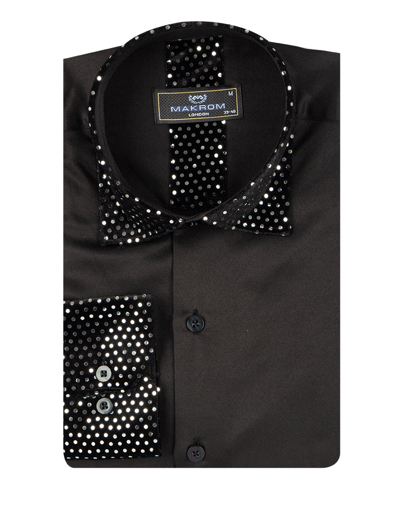 Black Fashion Shirt with Sequin Collar & Sleeve Design