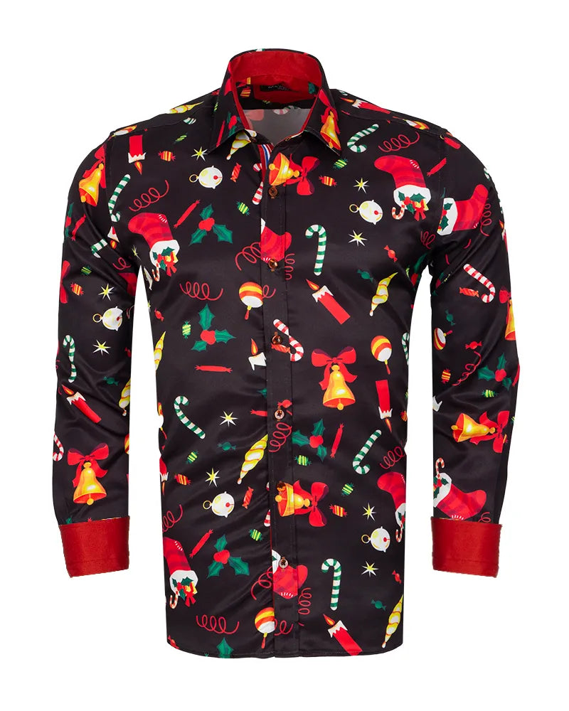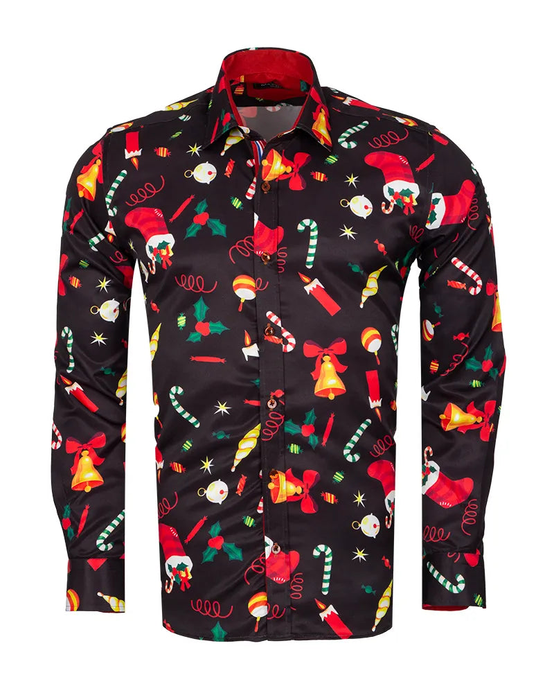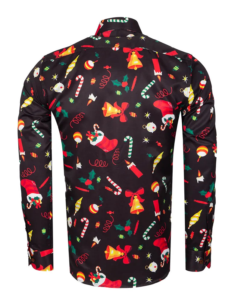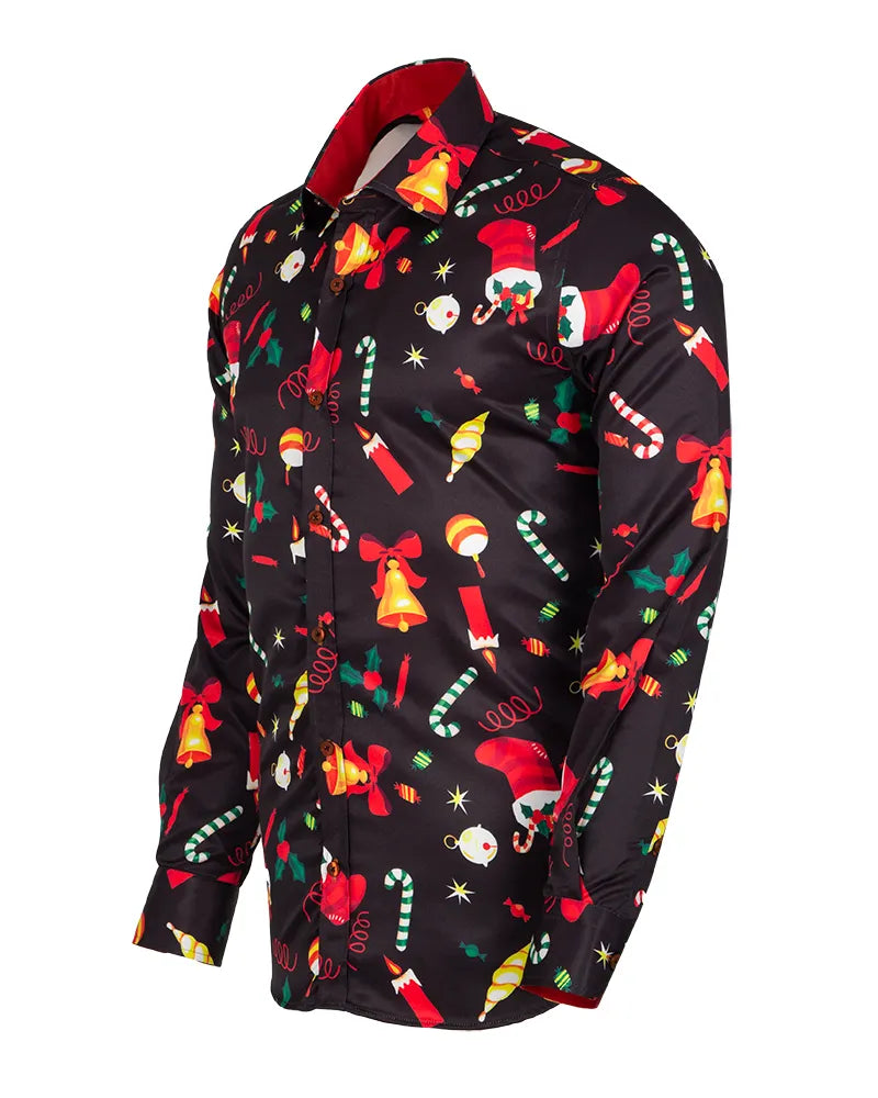 Black Festive Christmas Print Shirt