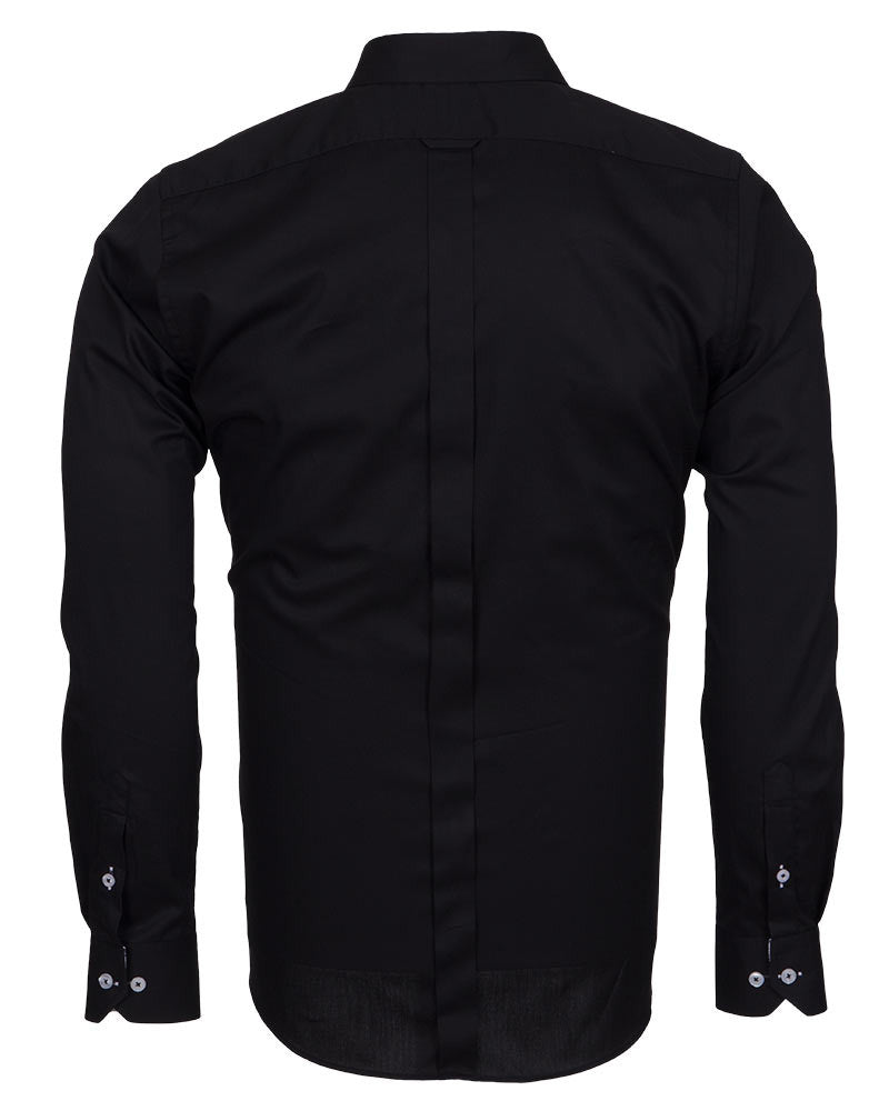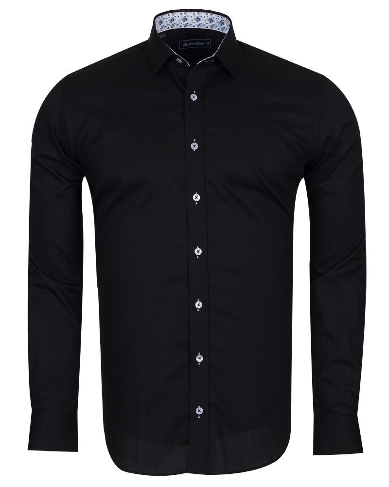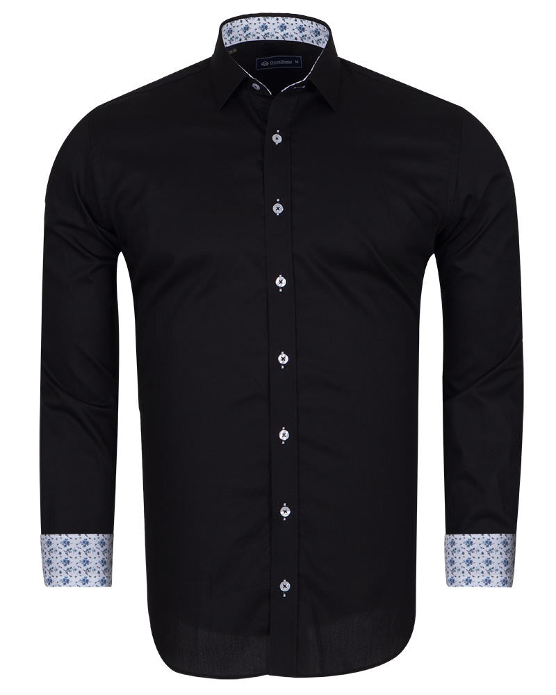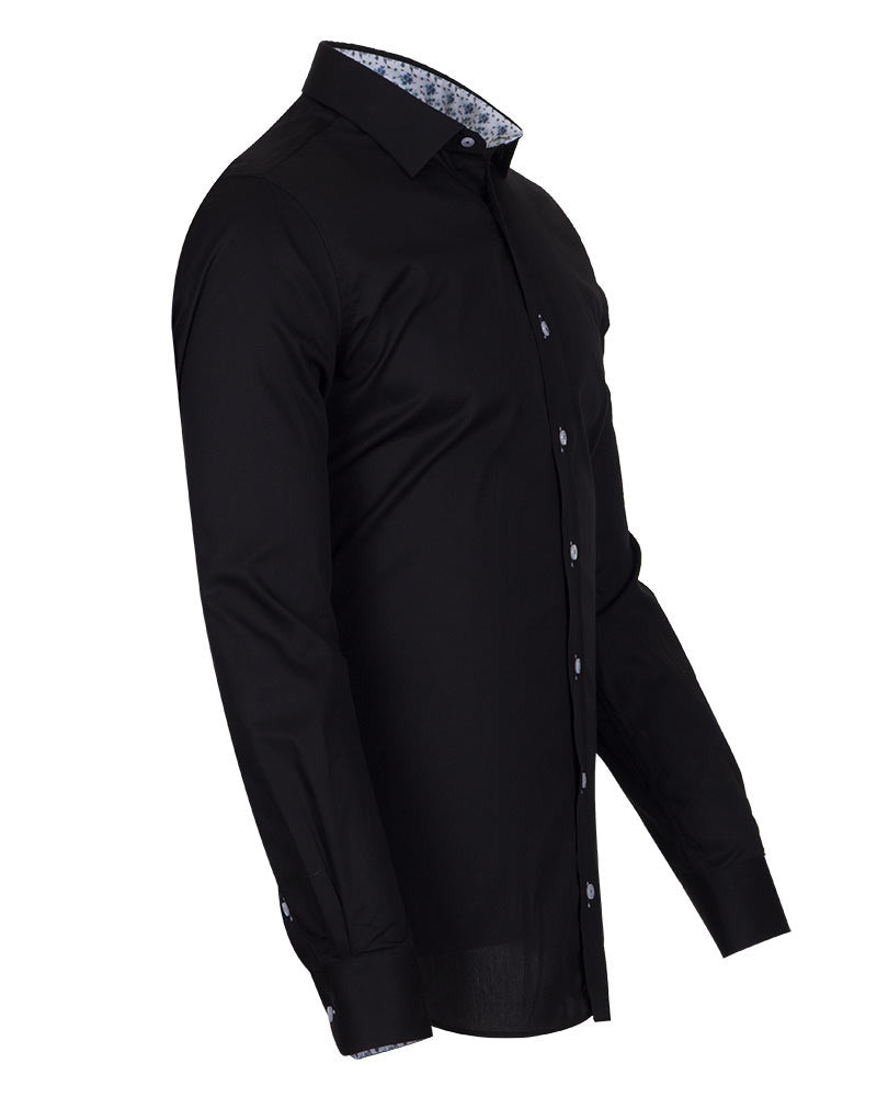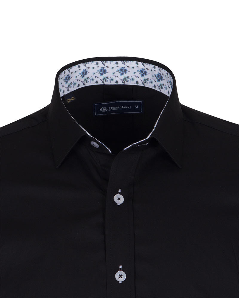 Introducing the Black Plain Small Collar Shirt With Floral Insert, a stylish addition to your wardrobe. Crafted from 97% cotton and 3% Lycra, this shirt offers both comfort and flexibility.