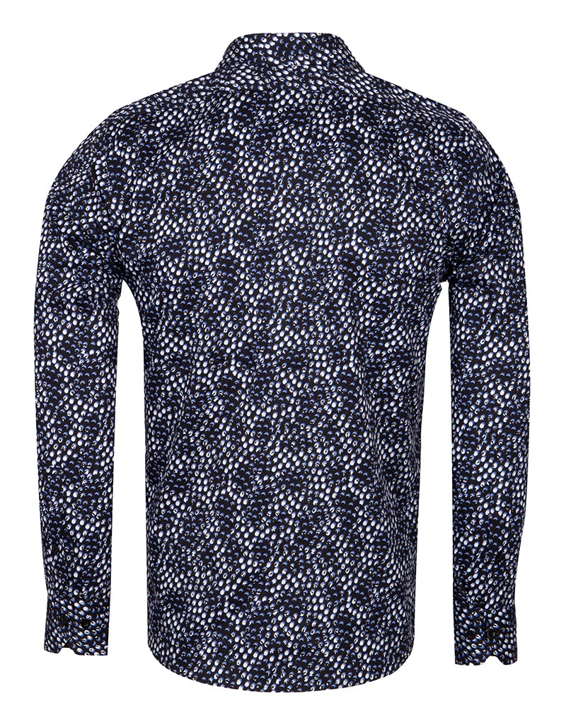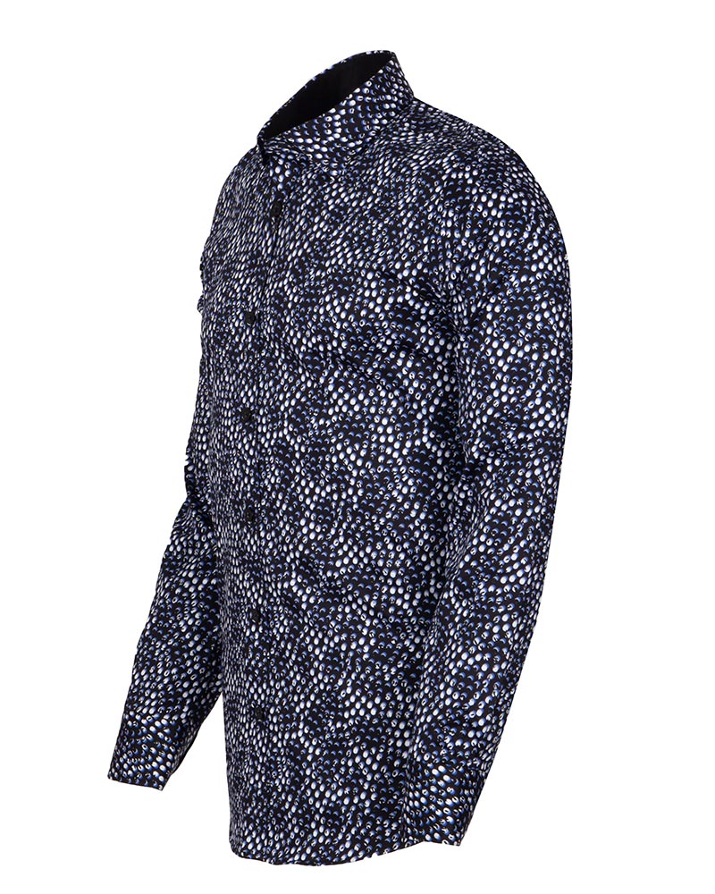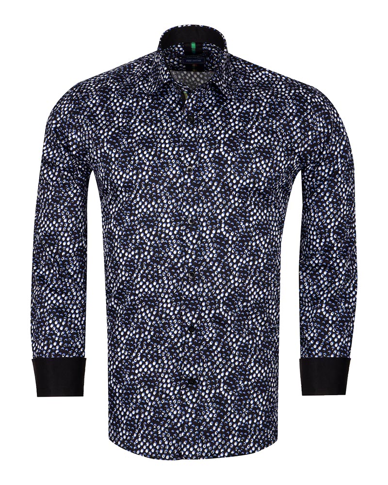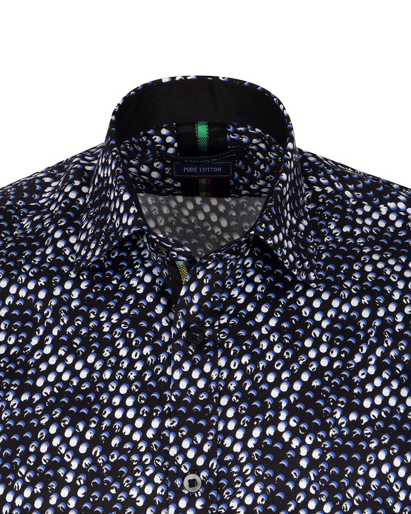 Introducing the Black Polka Dot Print Shirt with Matching Handkerchief, a stylish addition to any man's wardrobe. Crafted from 100% pure cotton, this shirt ensures comfort and breathability throughout the day.