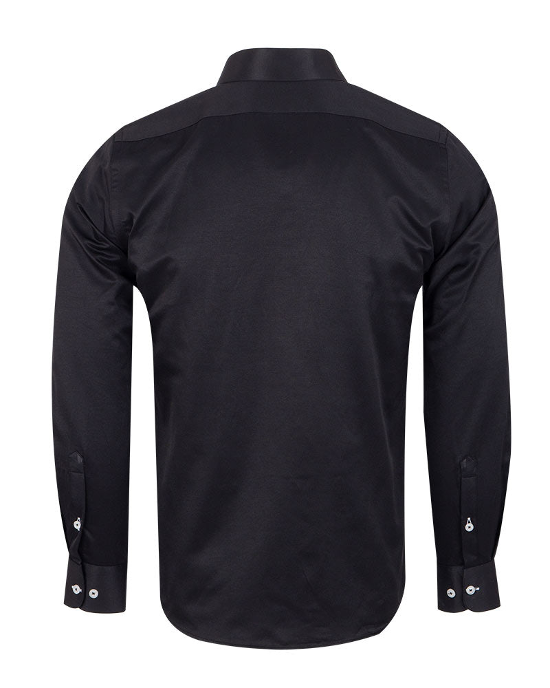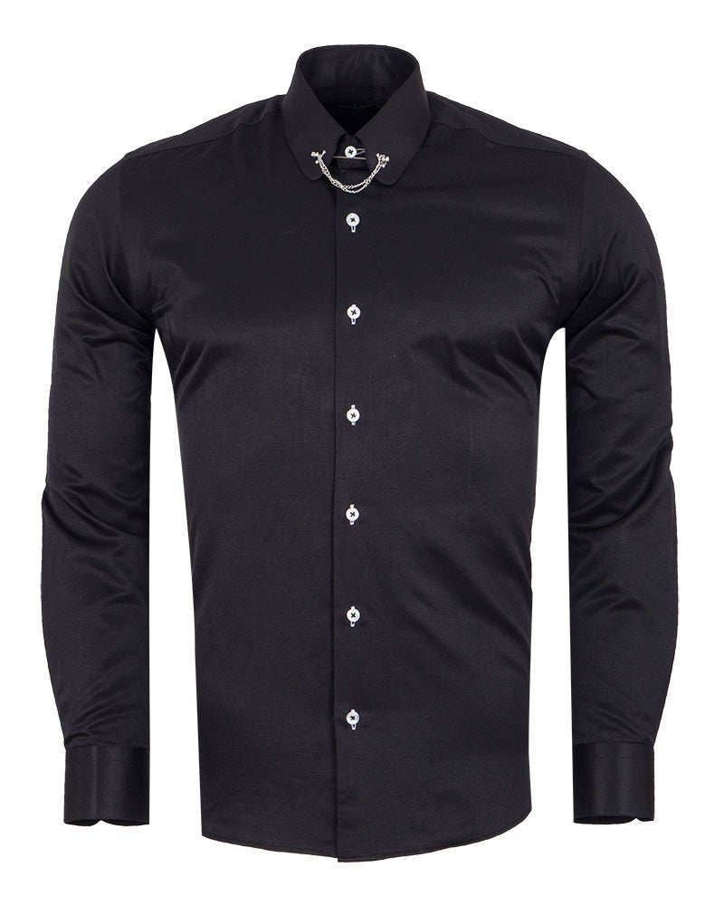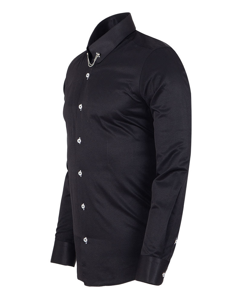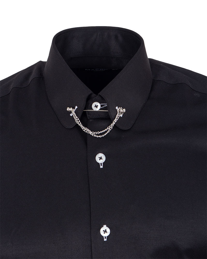 Discover the sophistication of the Black Round Collar Pin Shirt, a perfect blend of style and comfort.