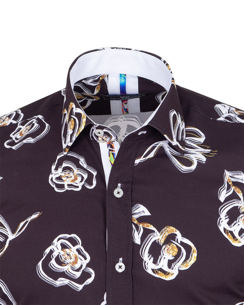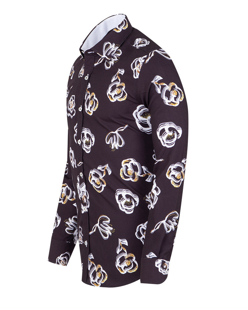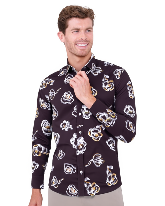 Introducing the Black Swirl Flower Print Shirt, a stylish addition to your wardrobe. This shirt features a unique swirl flower design that adds a touch of elegance to any outfit.