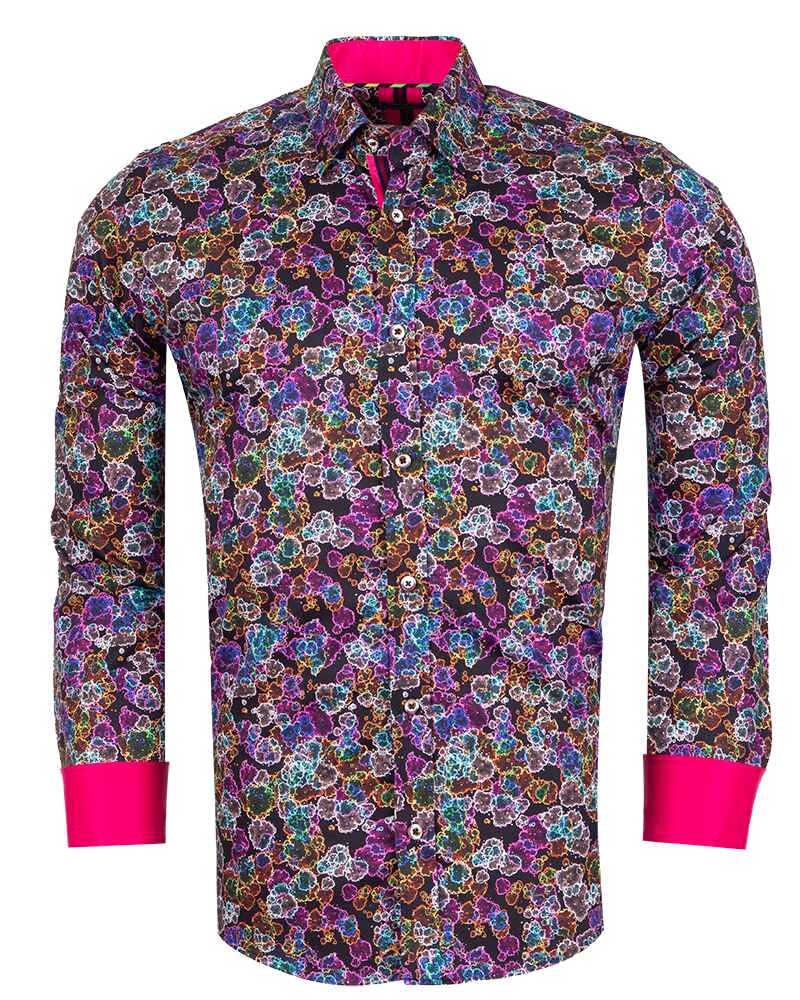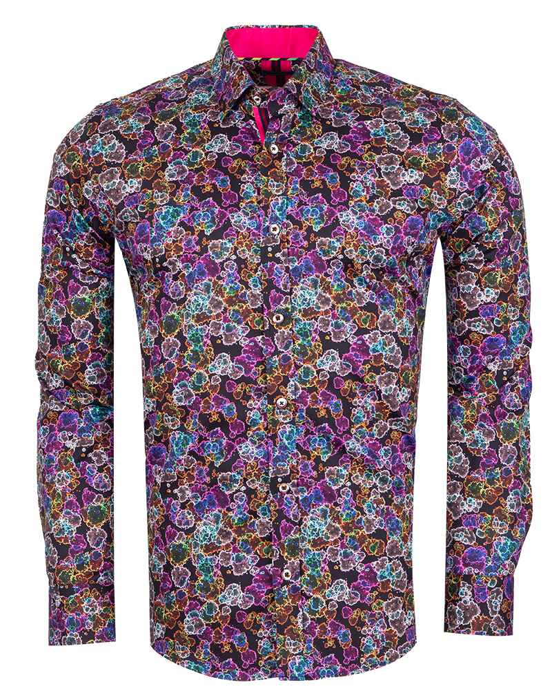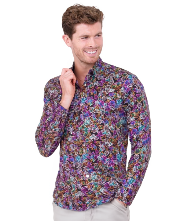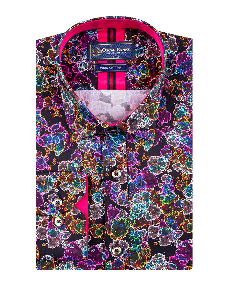 Neon Colourful Print Men's Shirt with Matching Handkerchief
