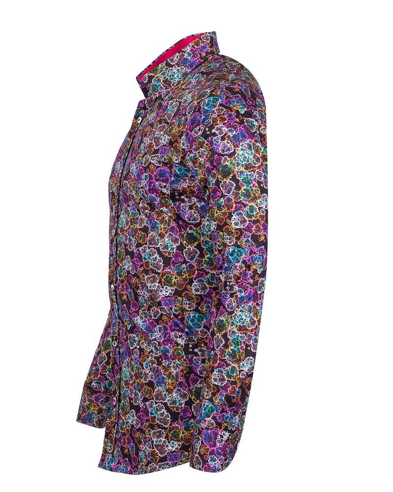 Introducing the Neon Colourful Print Men's Shirt with Matching Handkerchief, a vibrant addition to any wardrobe. Crafted from 100% satin cotton, this shirt offers both comfort and style.