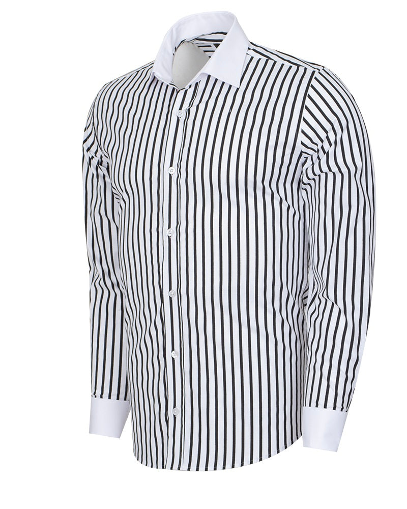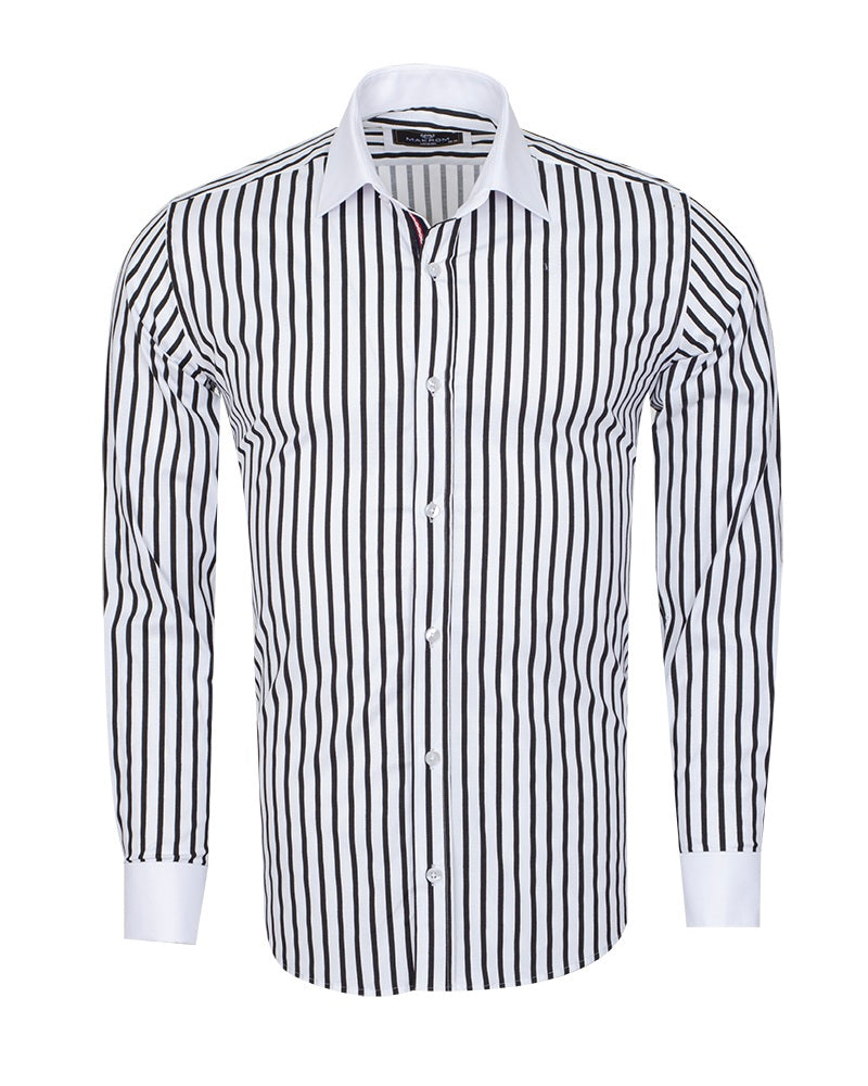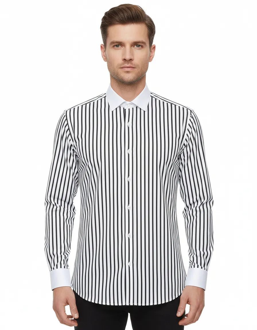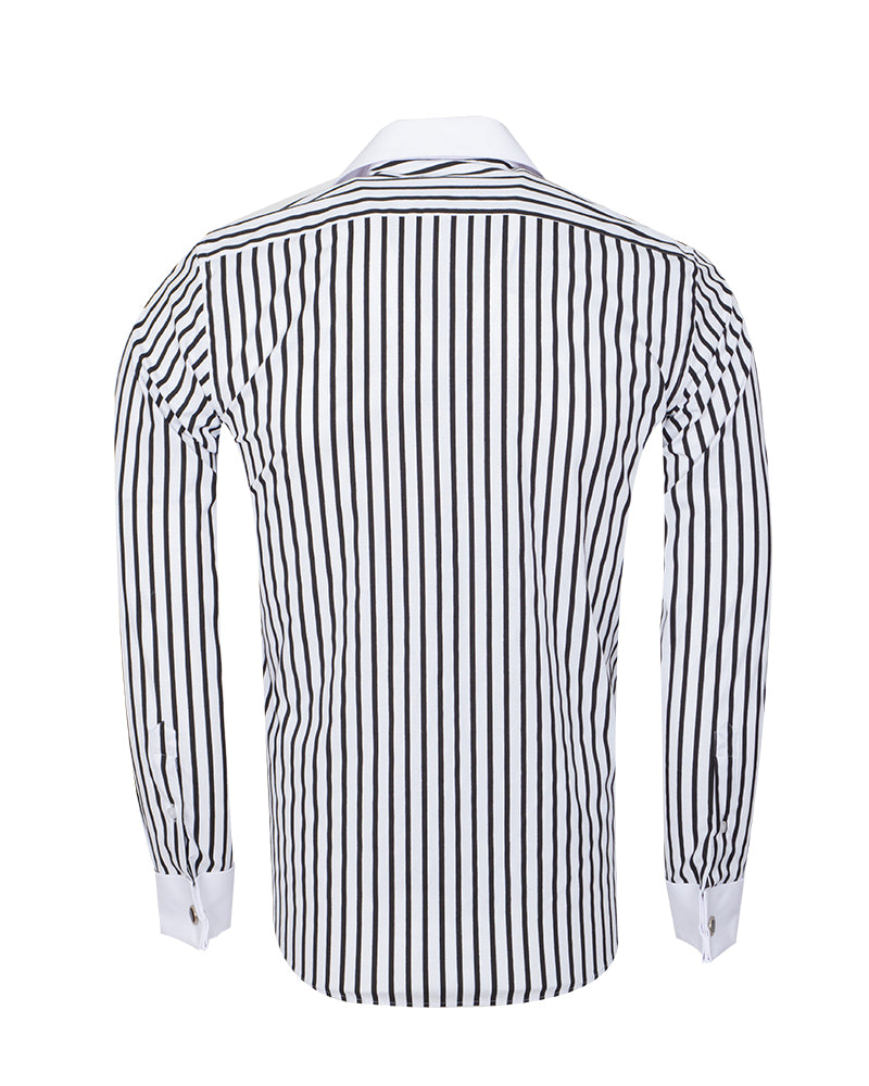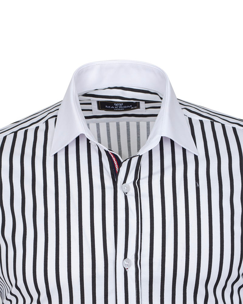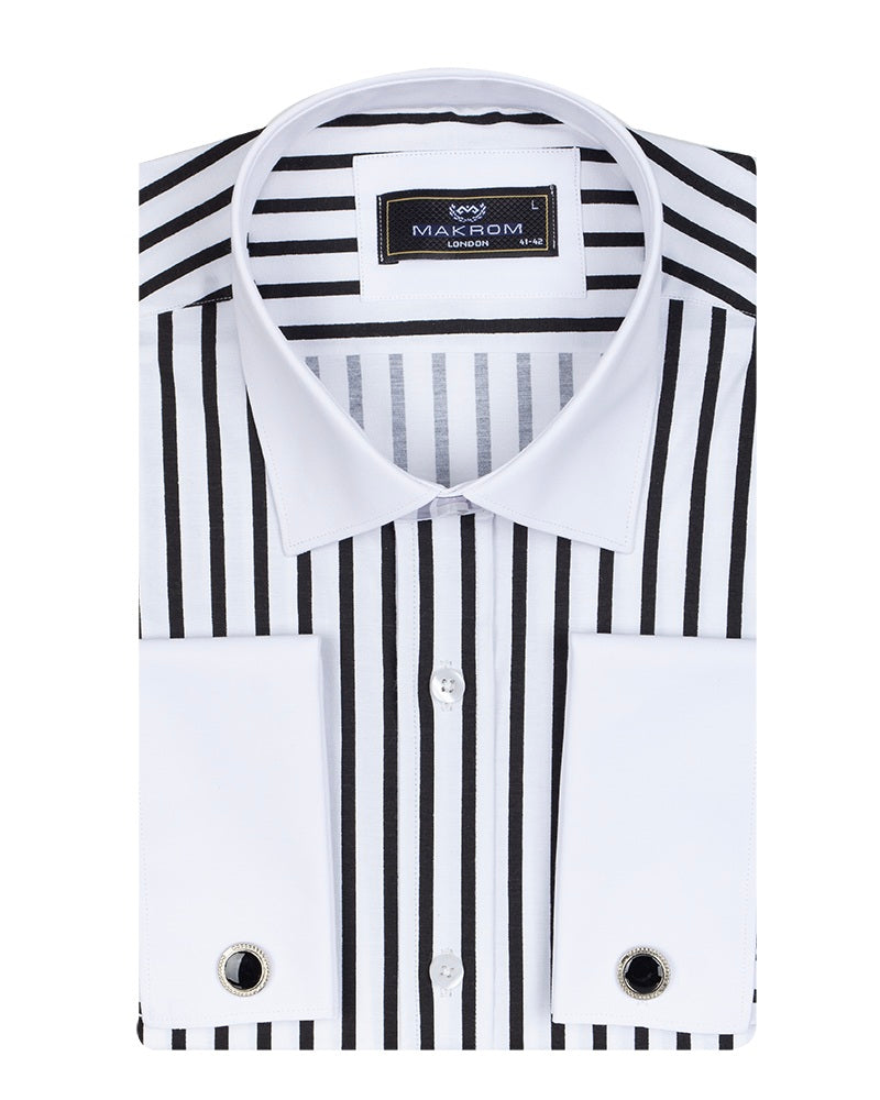 Makrom Double Cuff Shirt - Black Stripe Contrast Collar, Stylish & Comfortable