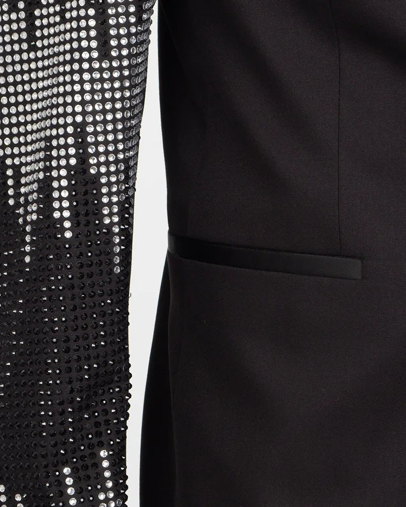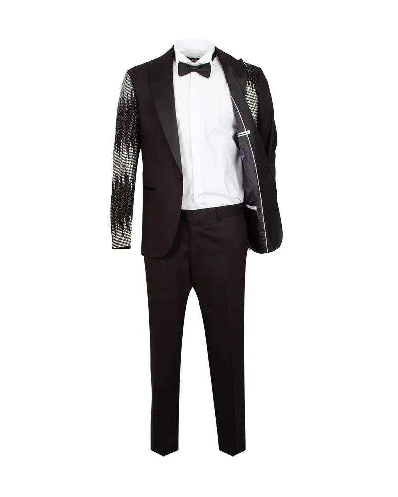 Black Tuxedo 3 Piece Suit Contrasting Lapel with Crystal Embellishments