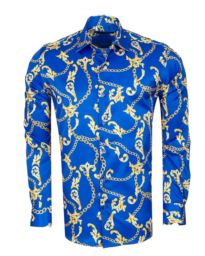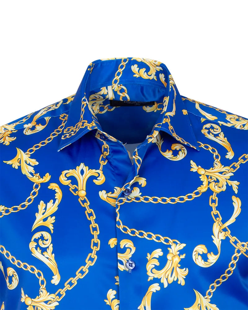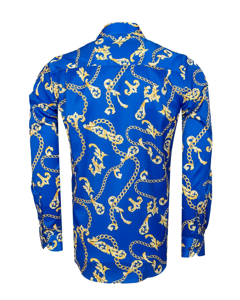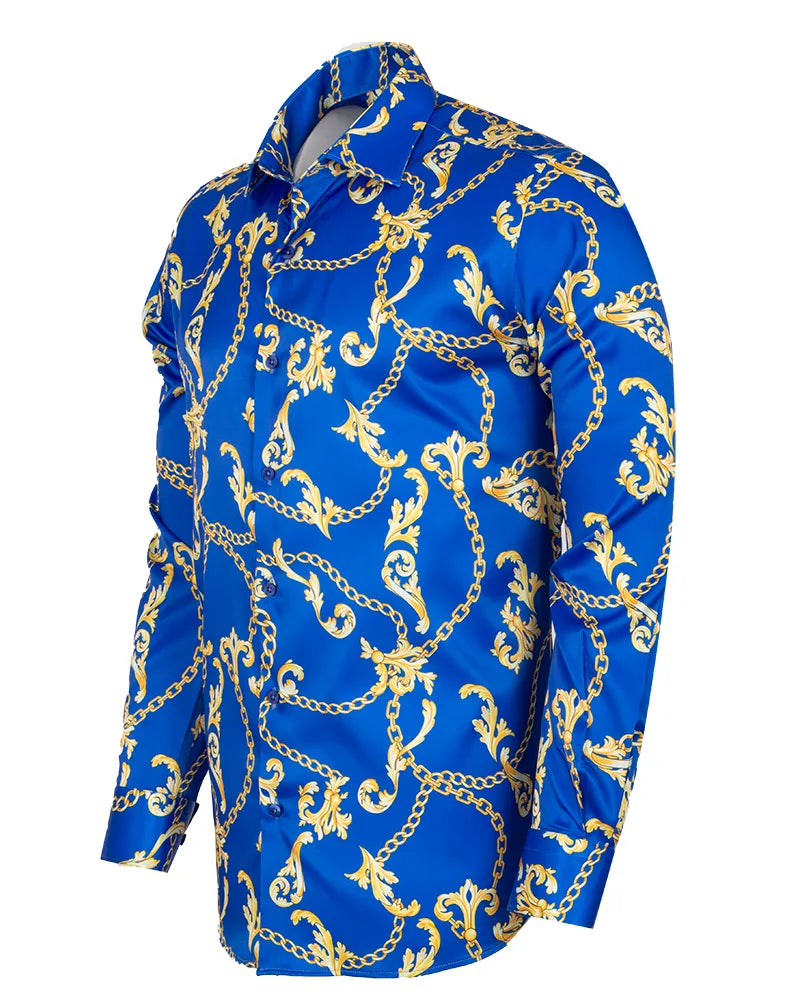 Blue Baroque Chain & Paisley Print Men`s Shirt
