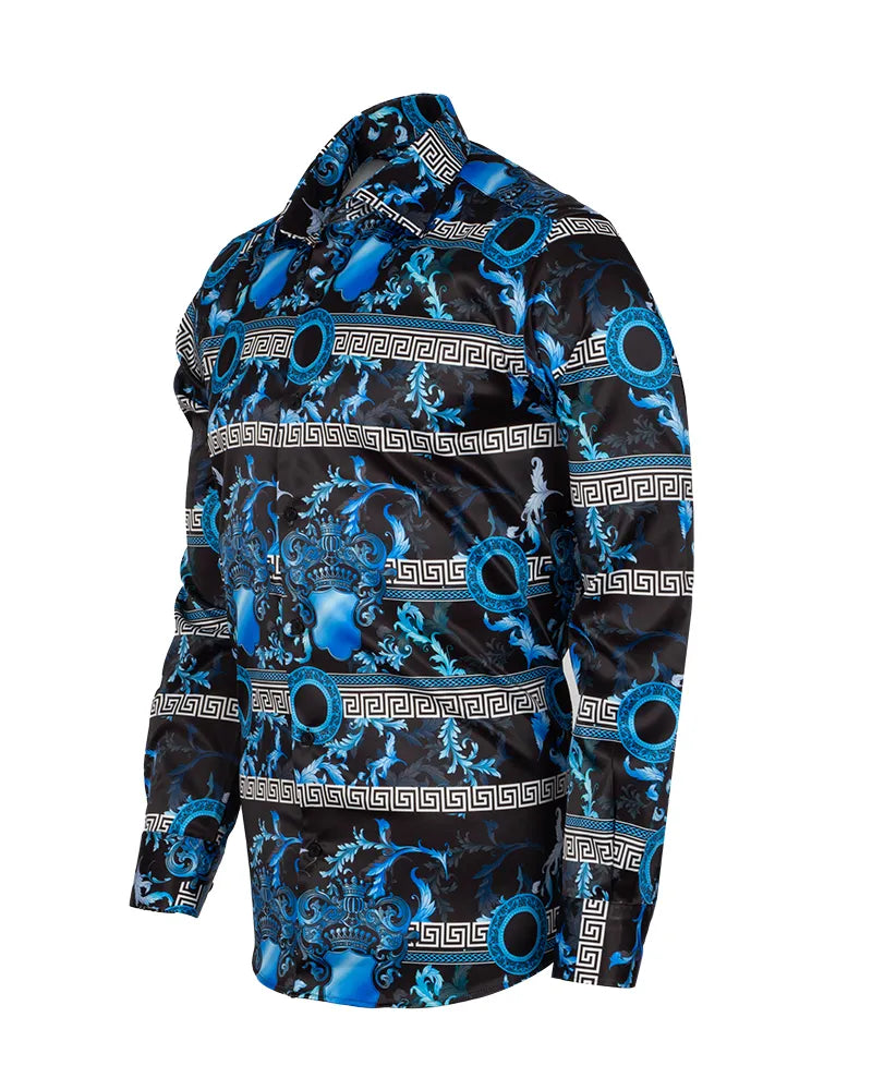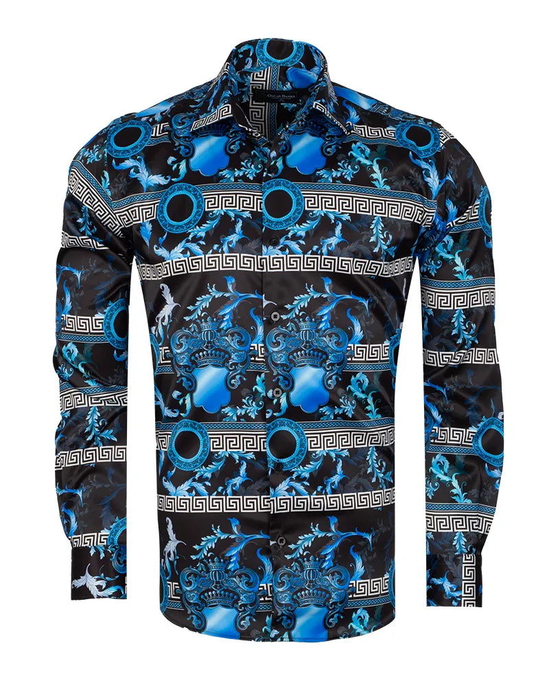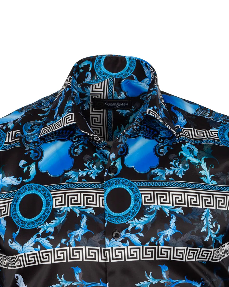 Introducing the Blue Baroque Roman Ornament Paisley Print Men`s Shirt, a perfect blend of elegance and comfort. This shirt features a stunning Roman ornament print that adds a touch of sophistication to any outfit.