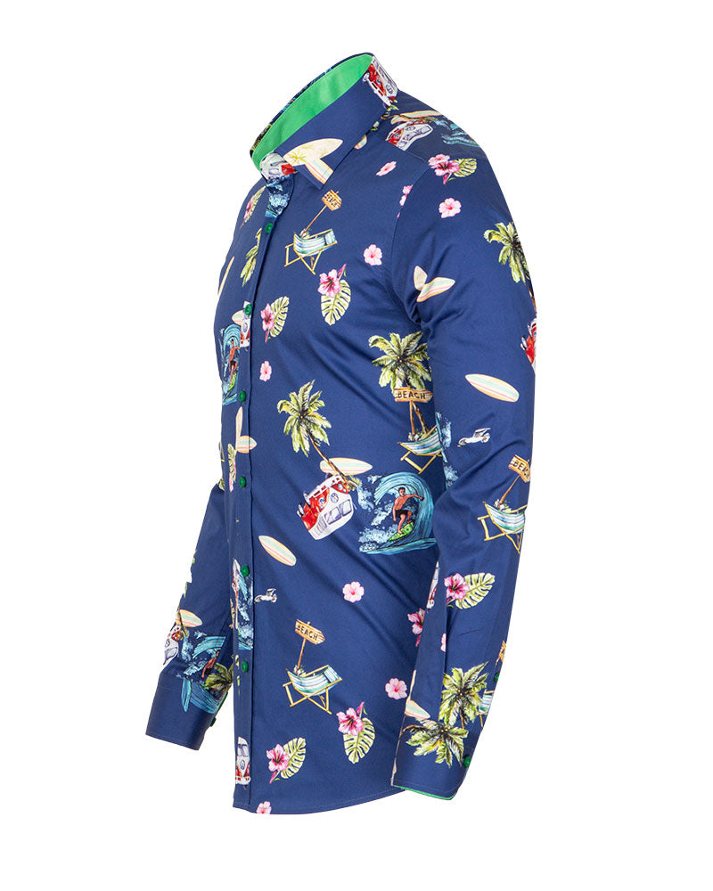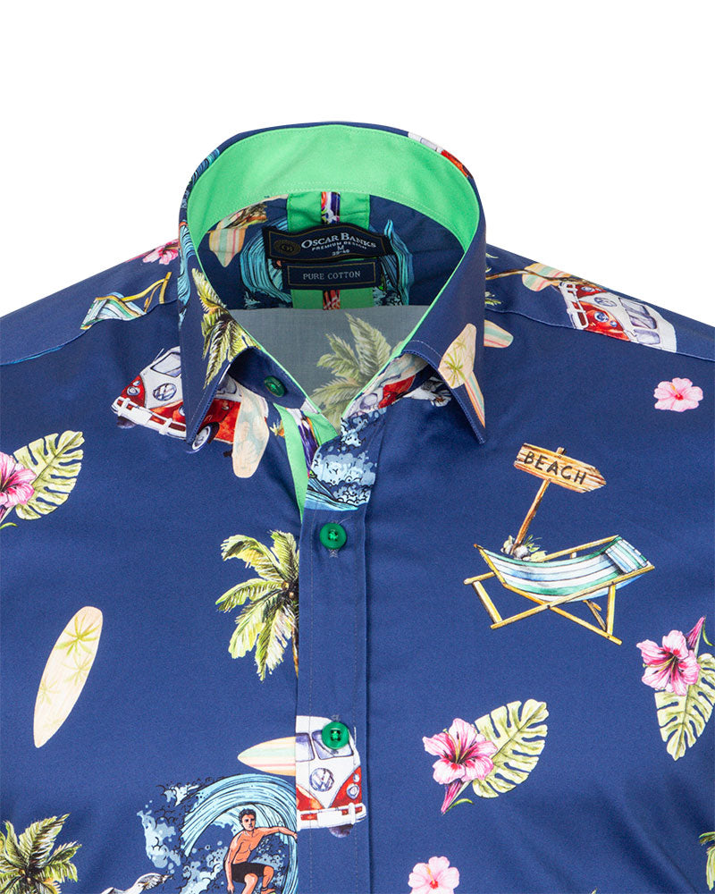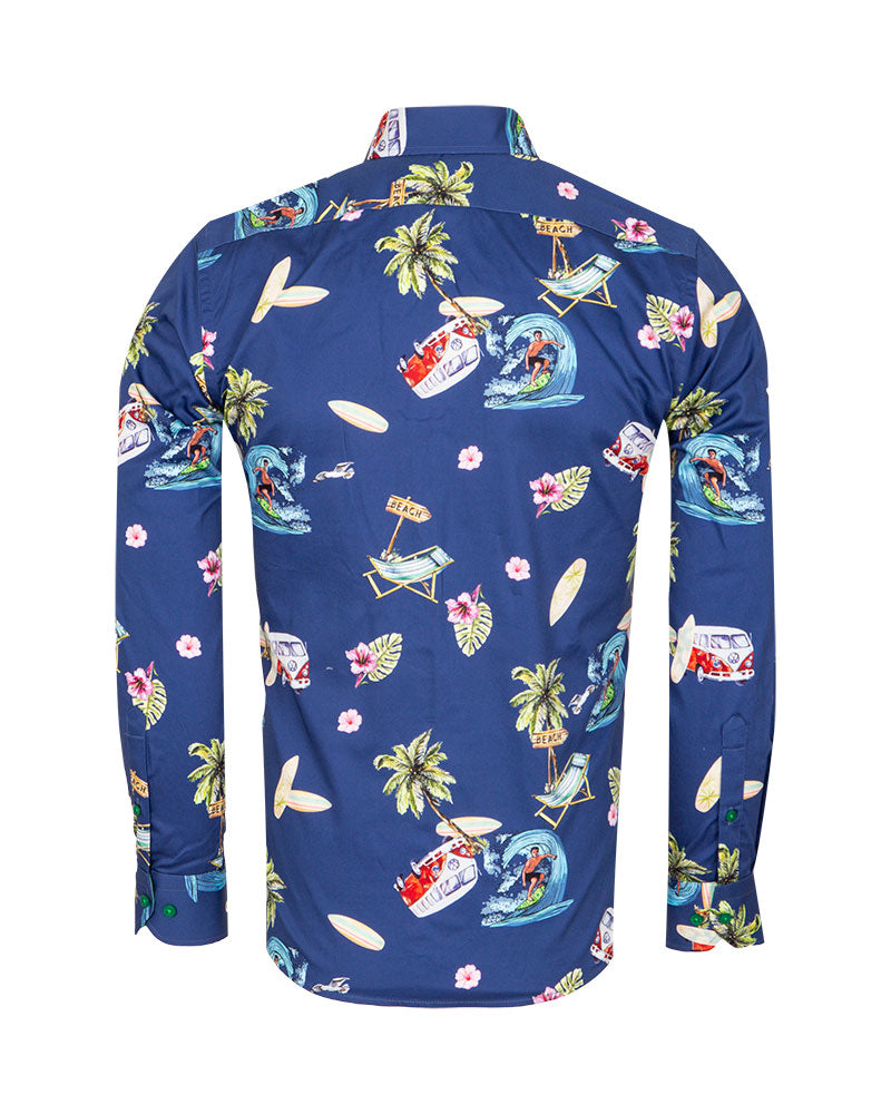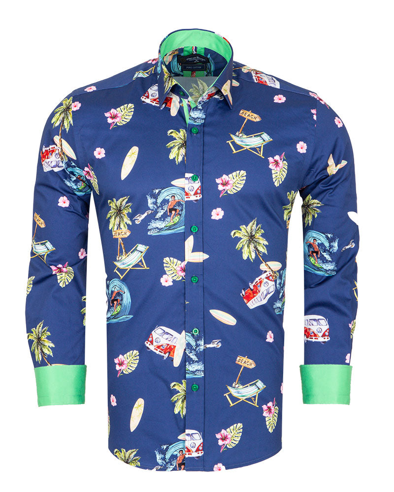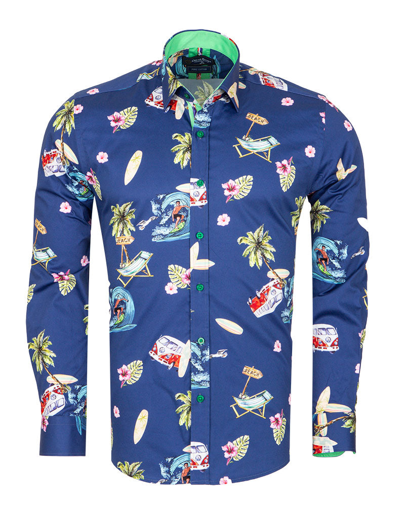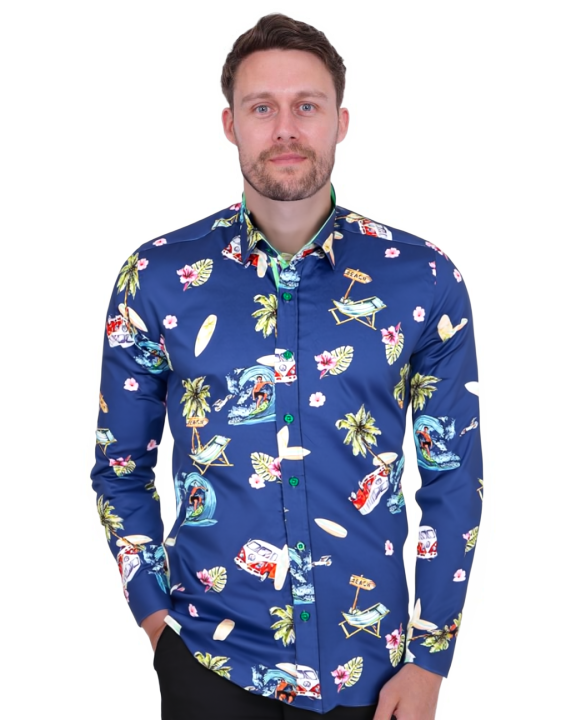 Discover the Blue Beach Print Long Sleeve Pure Cotton Shirt, perfect for your summer wardrobe. This shirt features a vibrant beach-themed print that captures the essence of sunny days by the shore.