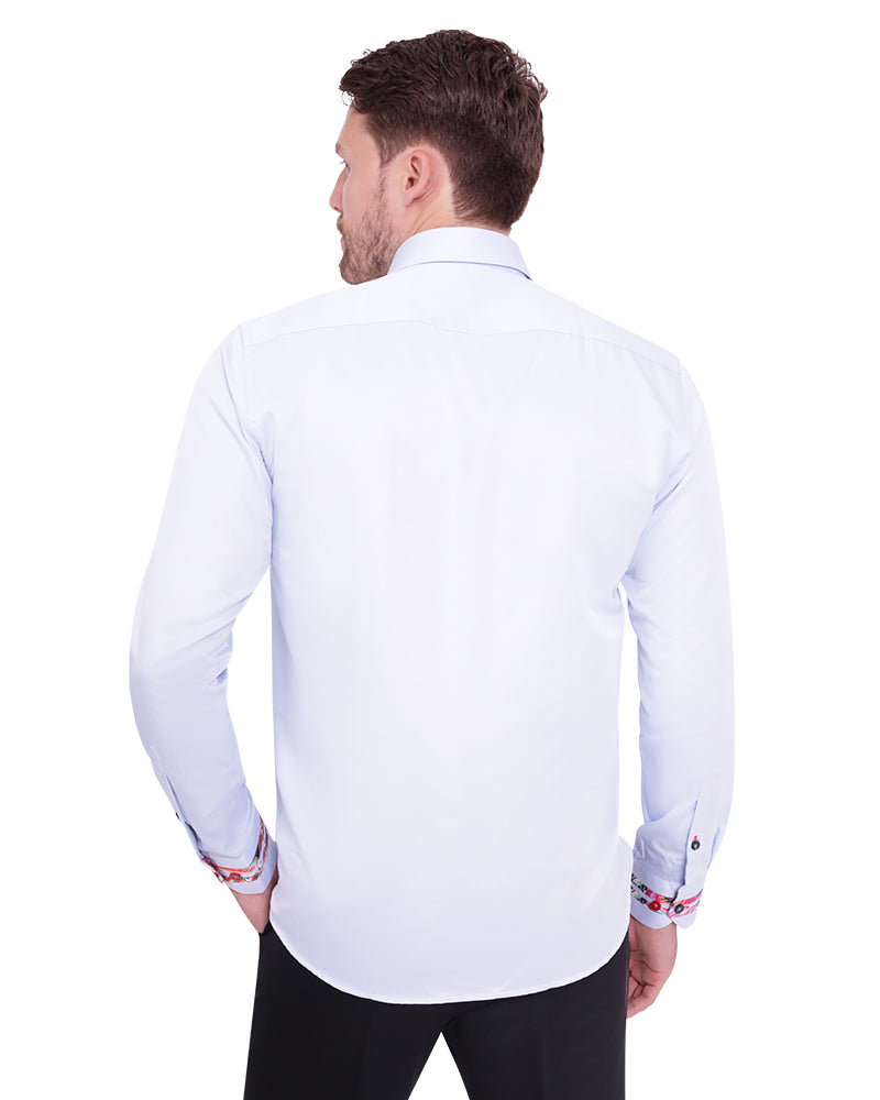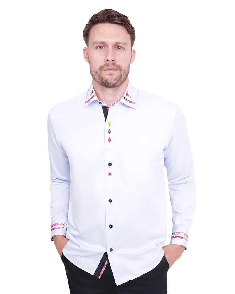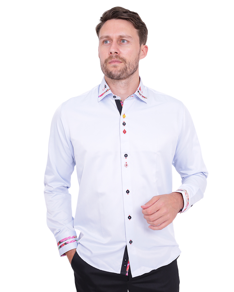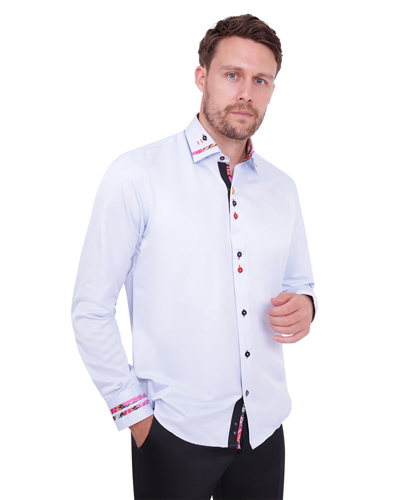 Introducing the Blue Fashion Shirt with Colourful Collar Tip Design, a perfect blend of style and comfort. This shirt features a contrasting front panel along with a unique collar and cuff tip design that adds a touch of flair to your wardrobe.