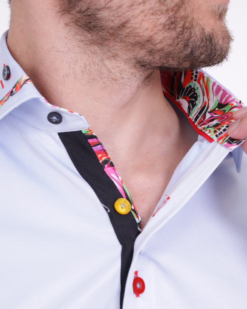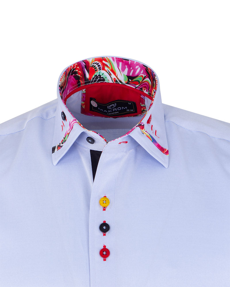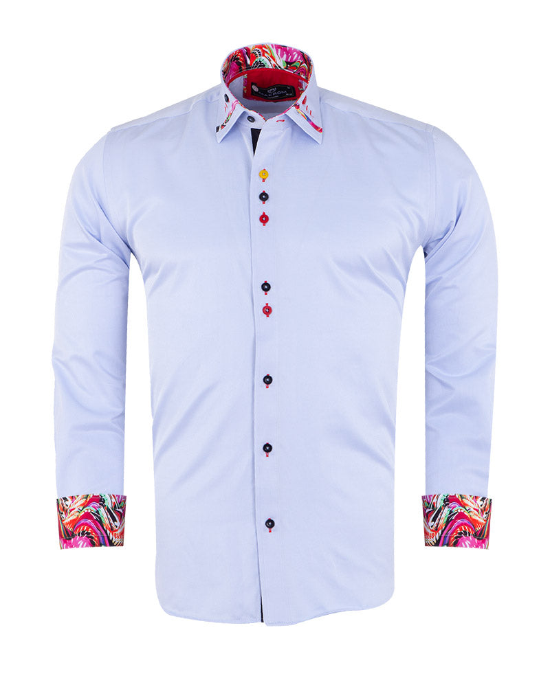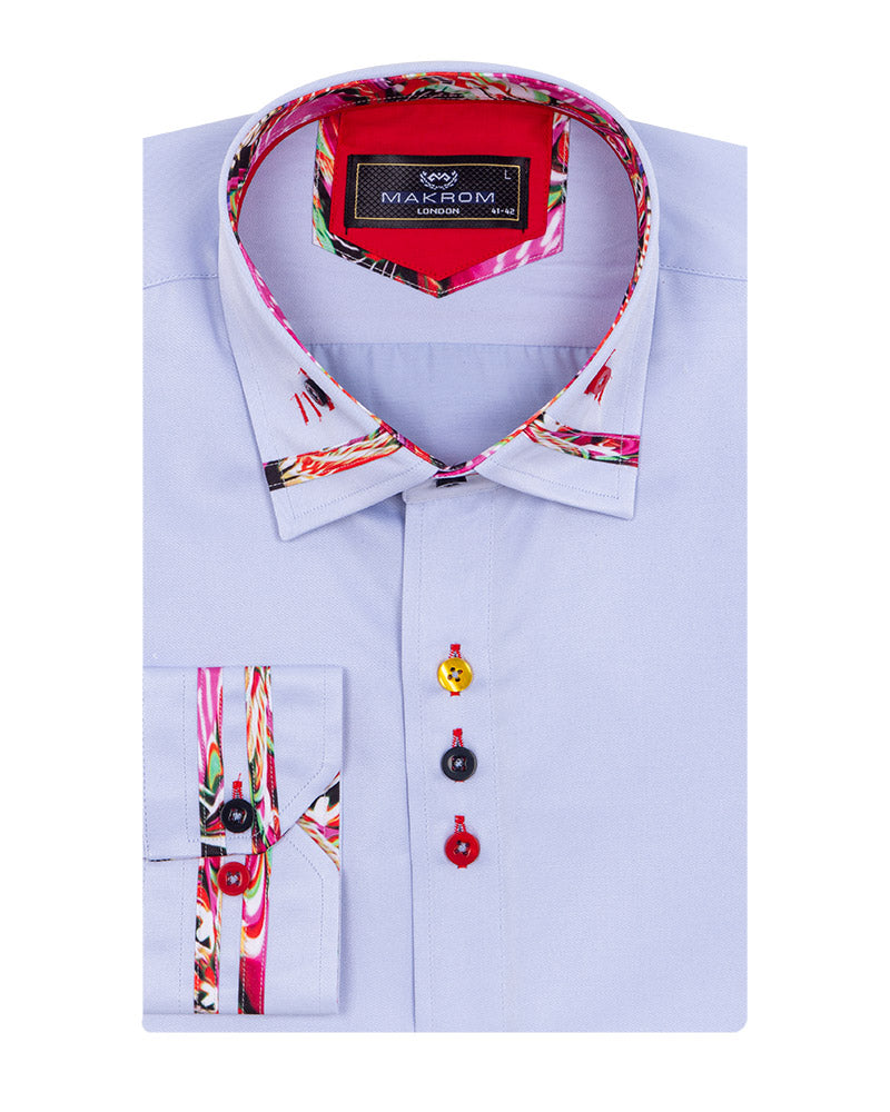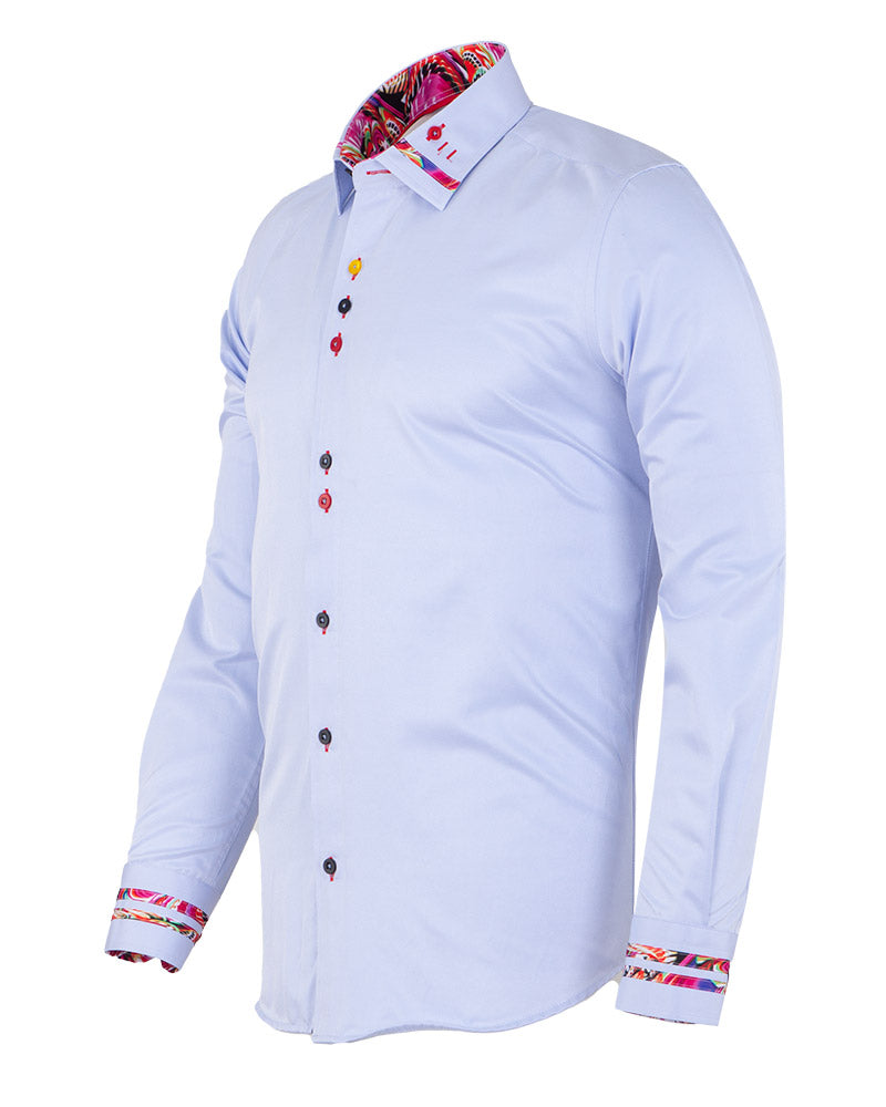 Blue Fashion Shirt with Colourful Collar Tip Design