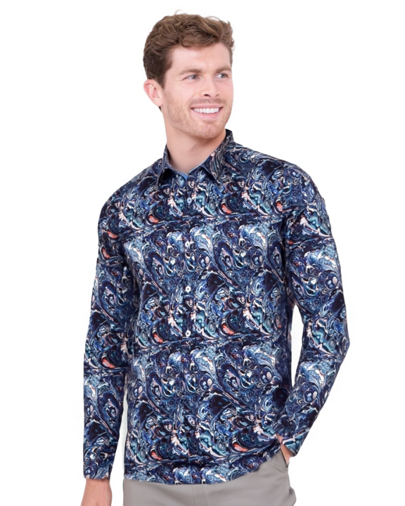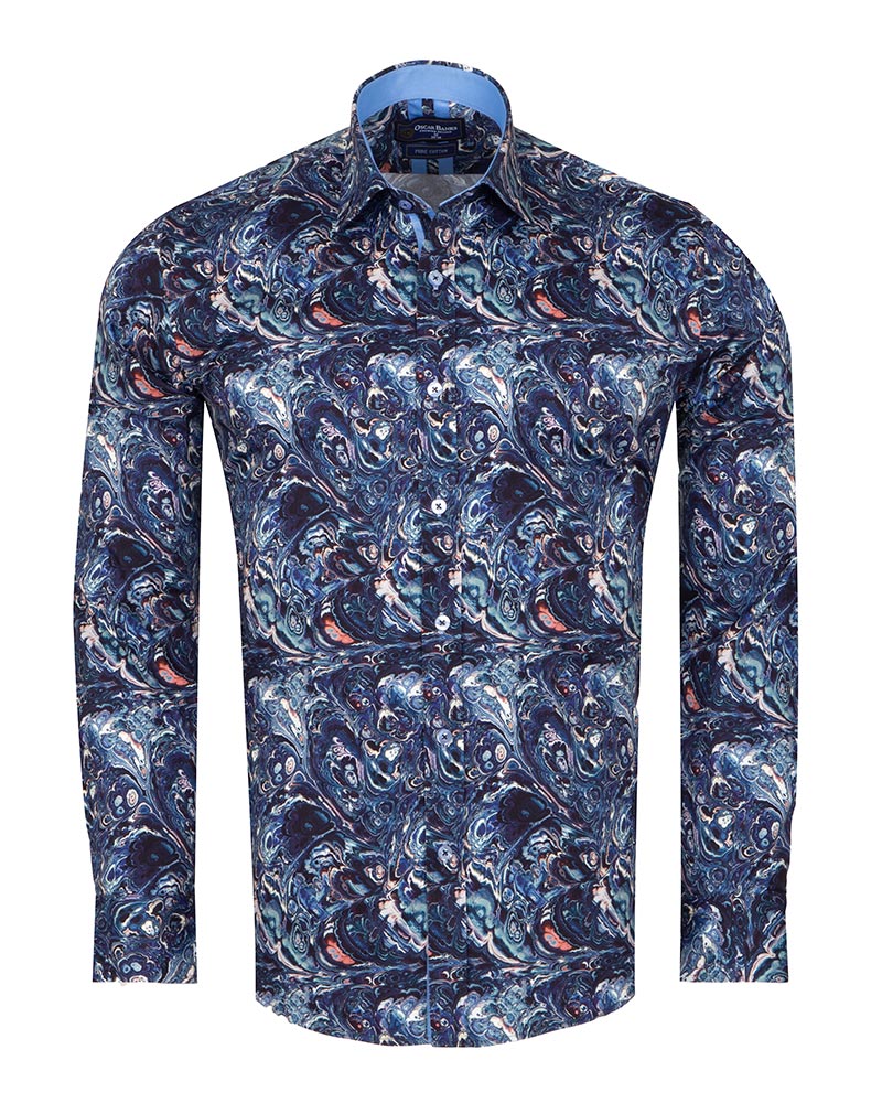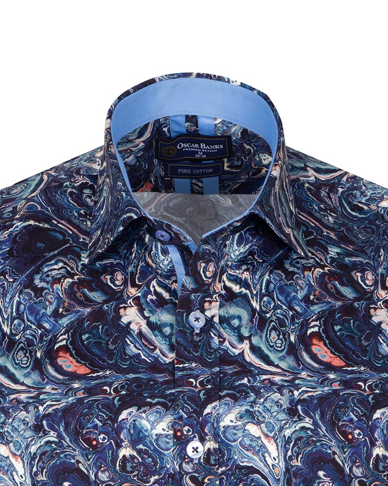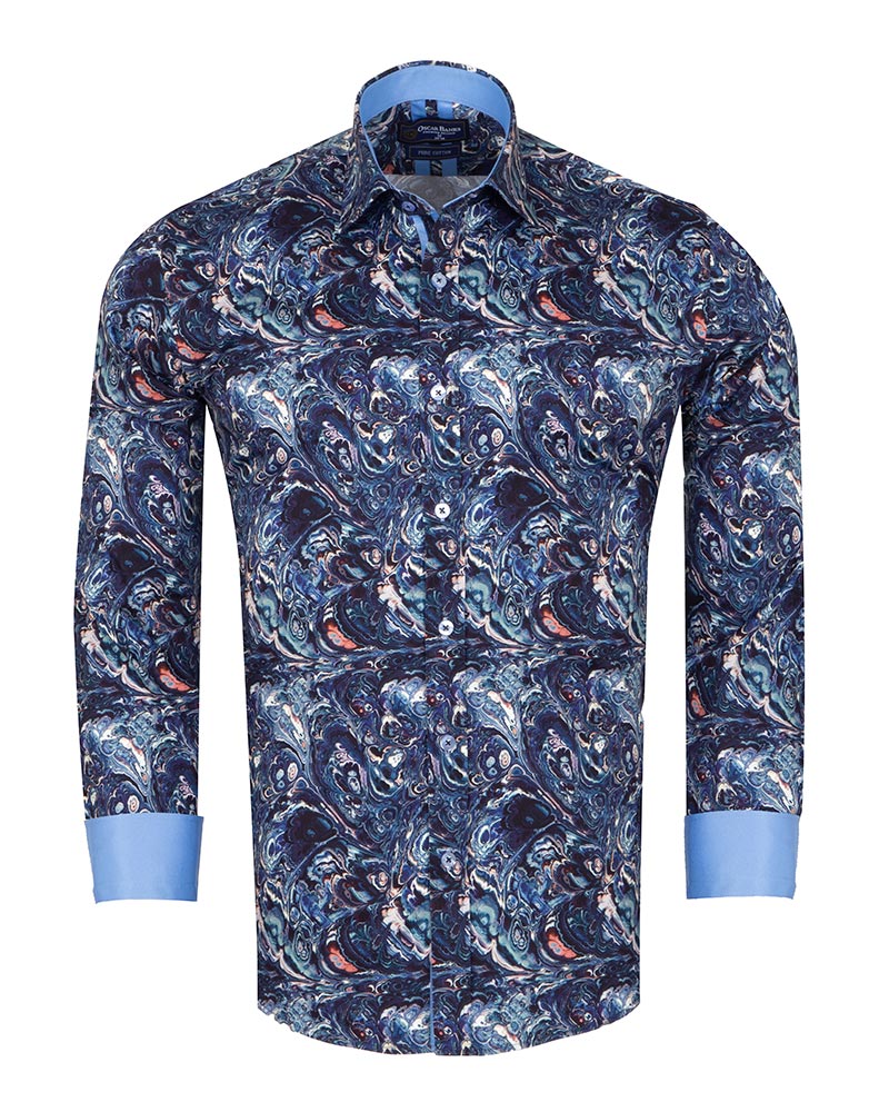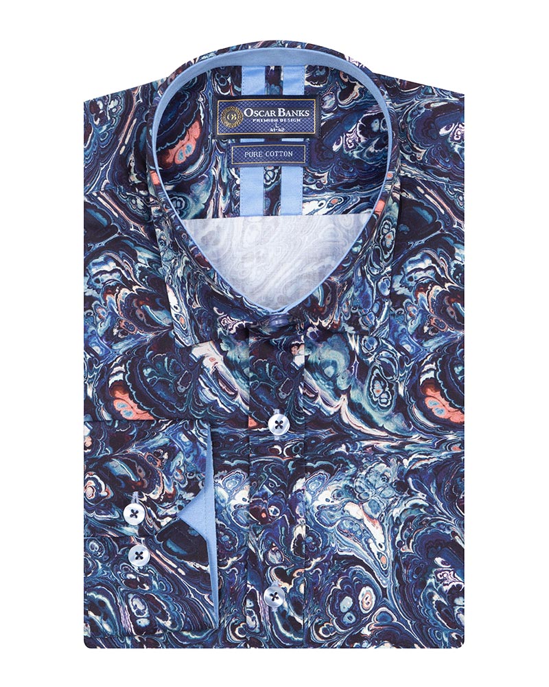 The shirt features a striking paisley print complemented by a contrasting collar and cuff, making it a standout piece for any occasion. With single cuffs and two-button adjustable cuffs, it ensures a tailored fit.
