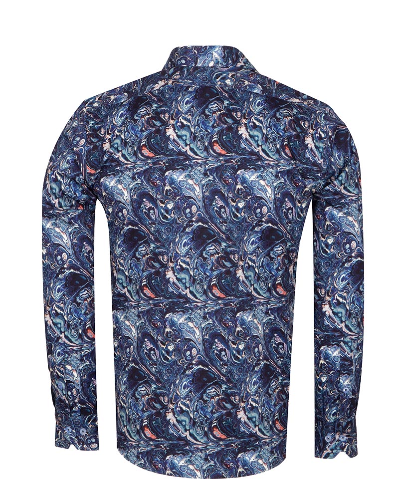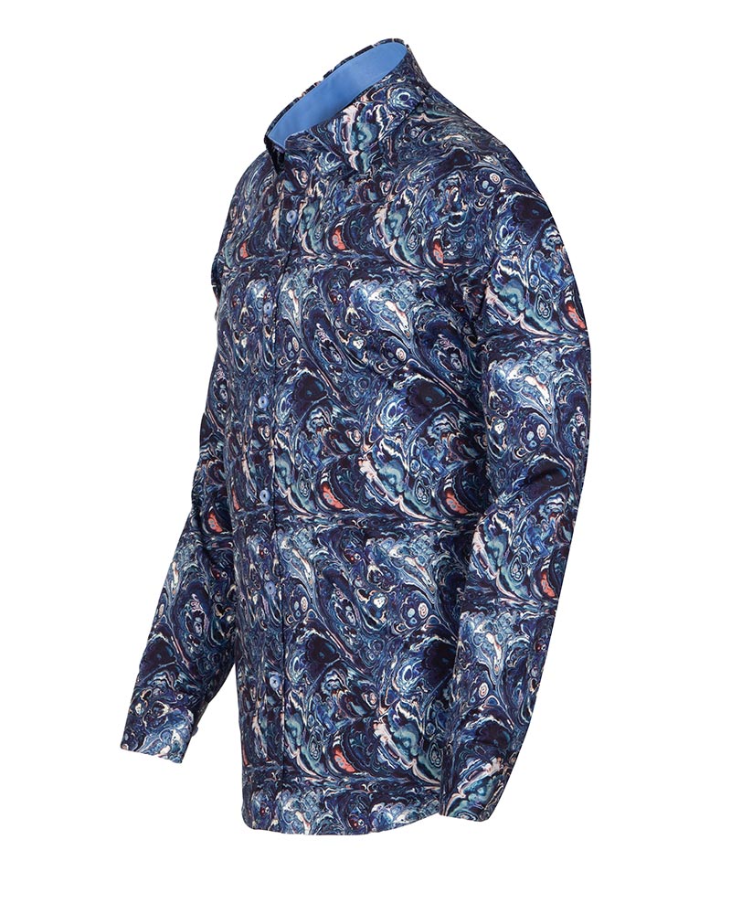 Blue Paisley Crust Print Shirt with Matching Handkerchief