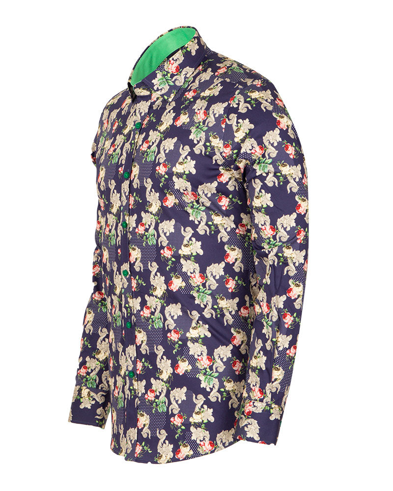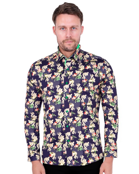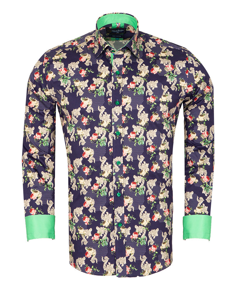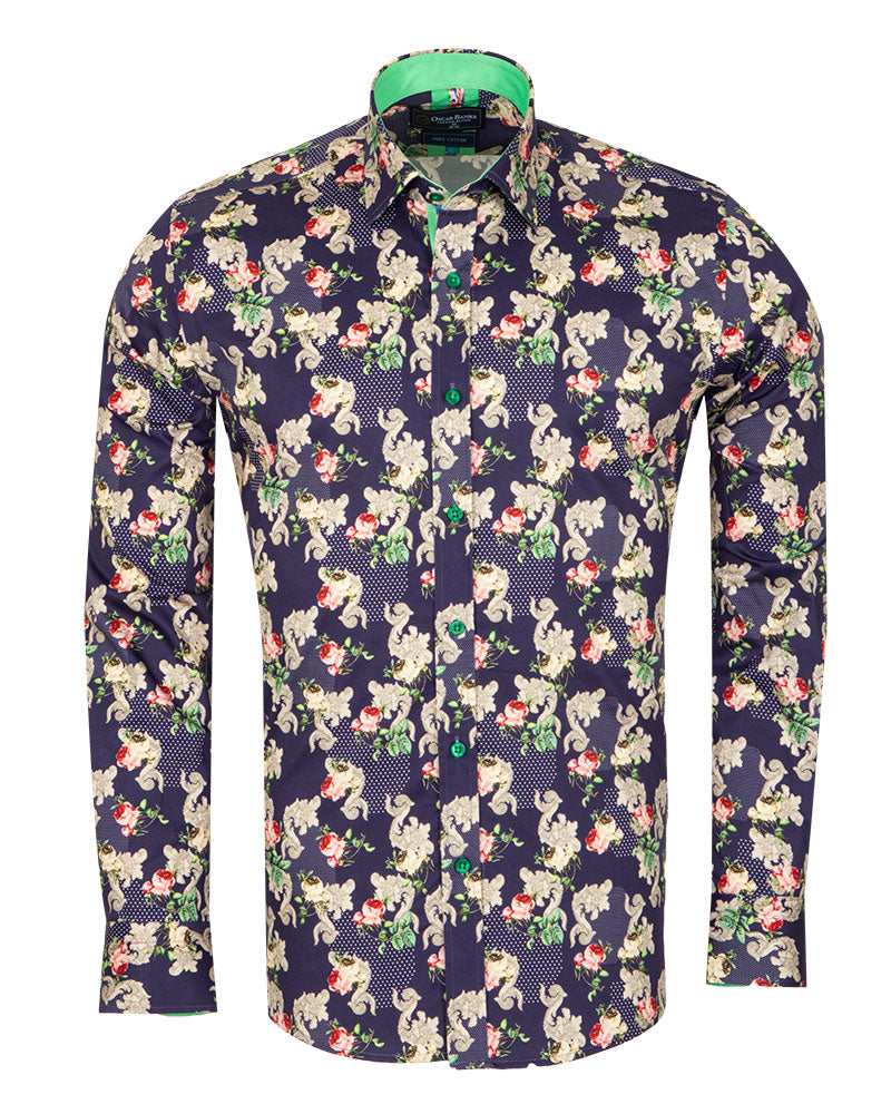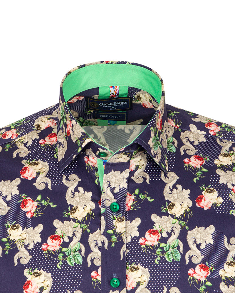 Introducing the Blue Floral Print with Matching Handkerchief, a perfect blend of style and sophistication. This shirt features a vibrant floral design that adds a touch of elegance to any outfit.