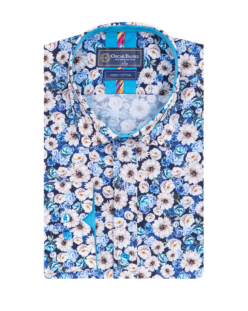 Introducing the Blue Floral Print Shirt with Matching Handkerchief, a perfect blend of style and sophistication. Crafted from 100% satin cotton, this shirt offers a luxurious feel and exceptional comfort.