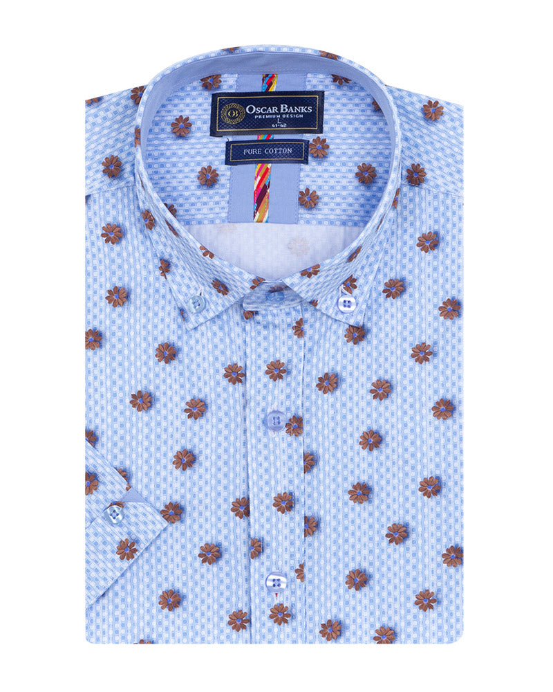 Blue Floral Print Short Sleeve Shirt