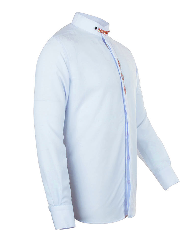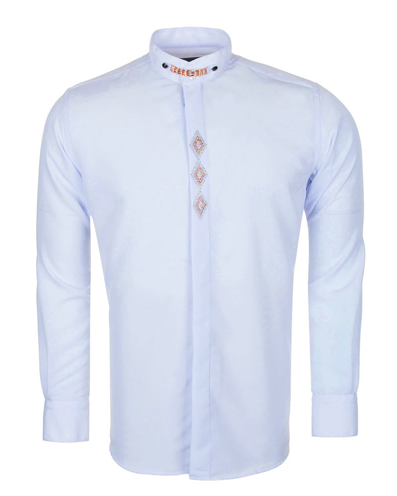 Light Blue Grandad Collar Chain Shirt with Diamantes