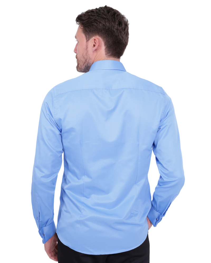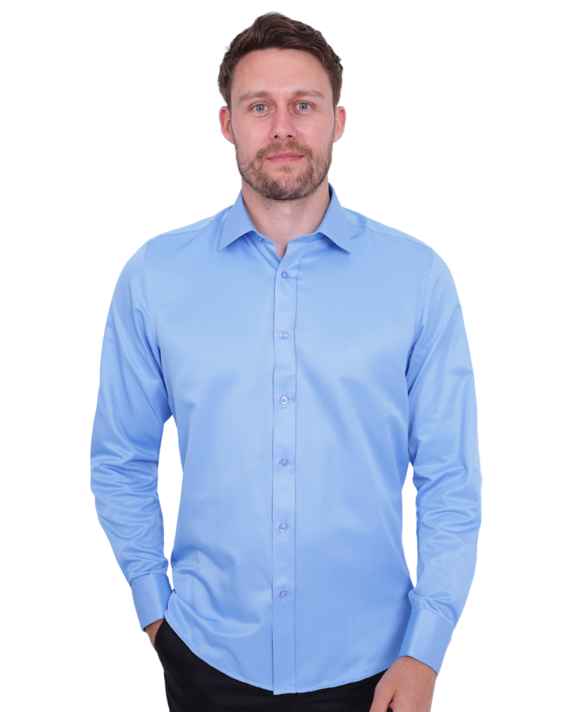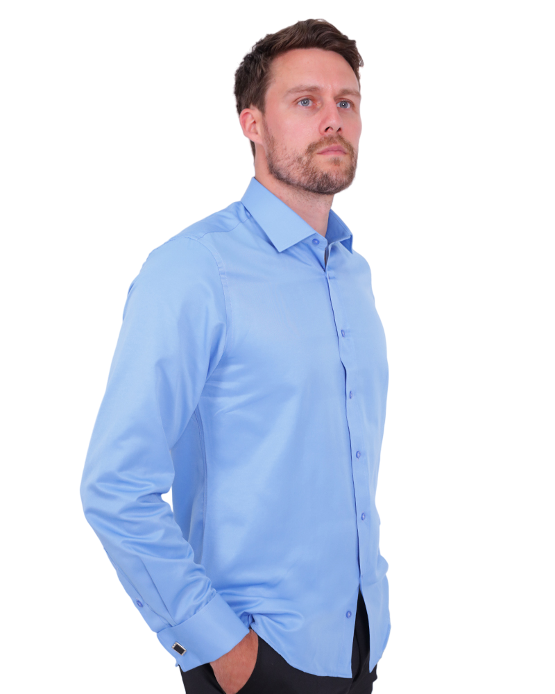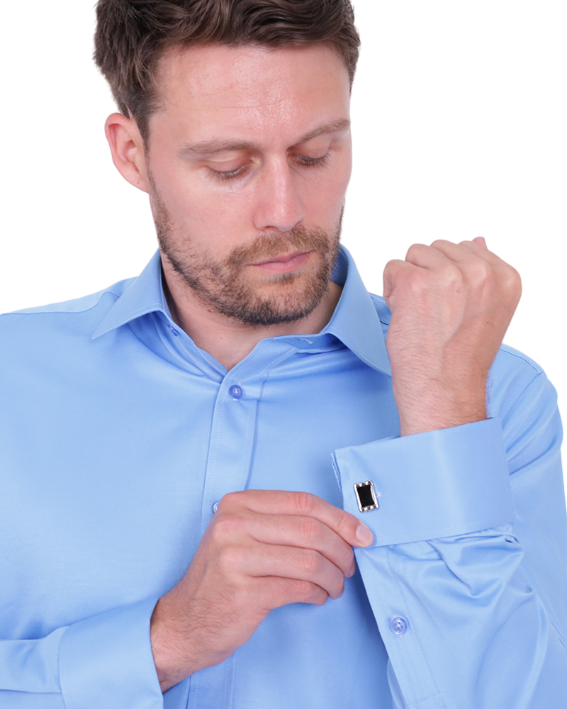 Introducing the Blue Classic Plain Double Cuff Shirt, a perfect blend of style and comfort. This shirt features a tapered fit, ensuring a sleek silhouette. Please refer to the size chart for the best fit.