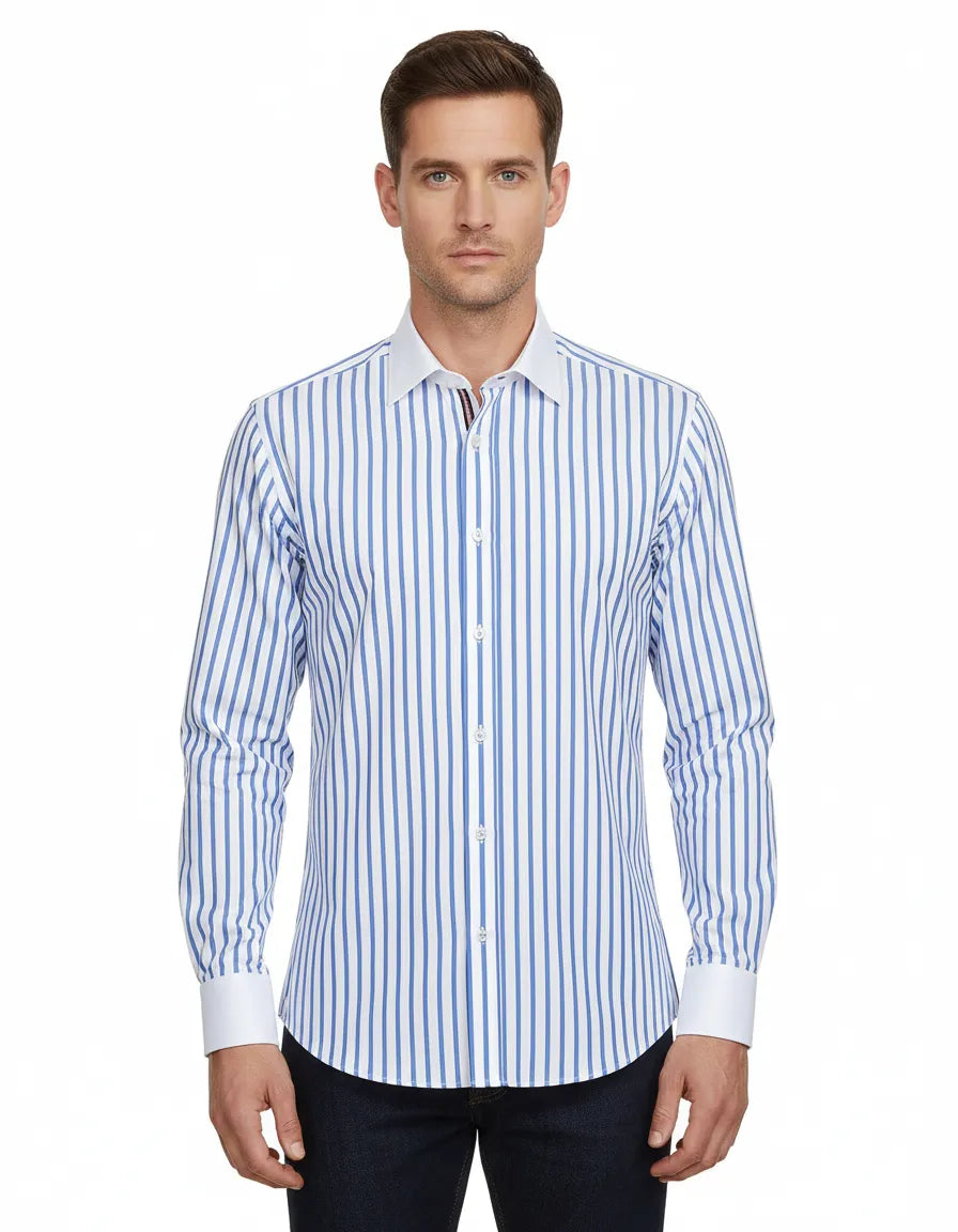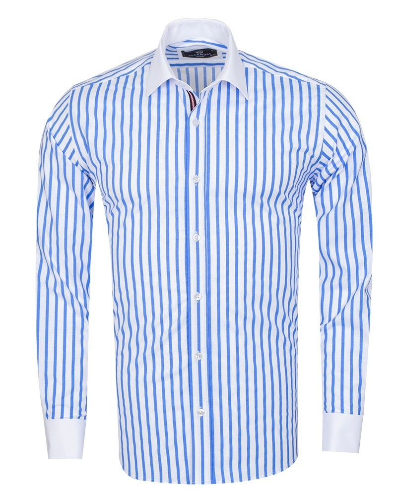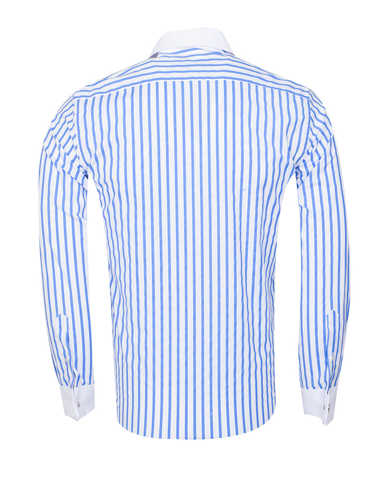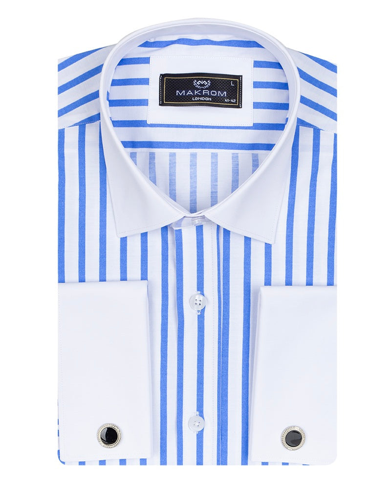 Blue Stripe Contrast Collar Double Cuff Shirt