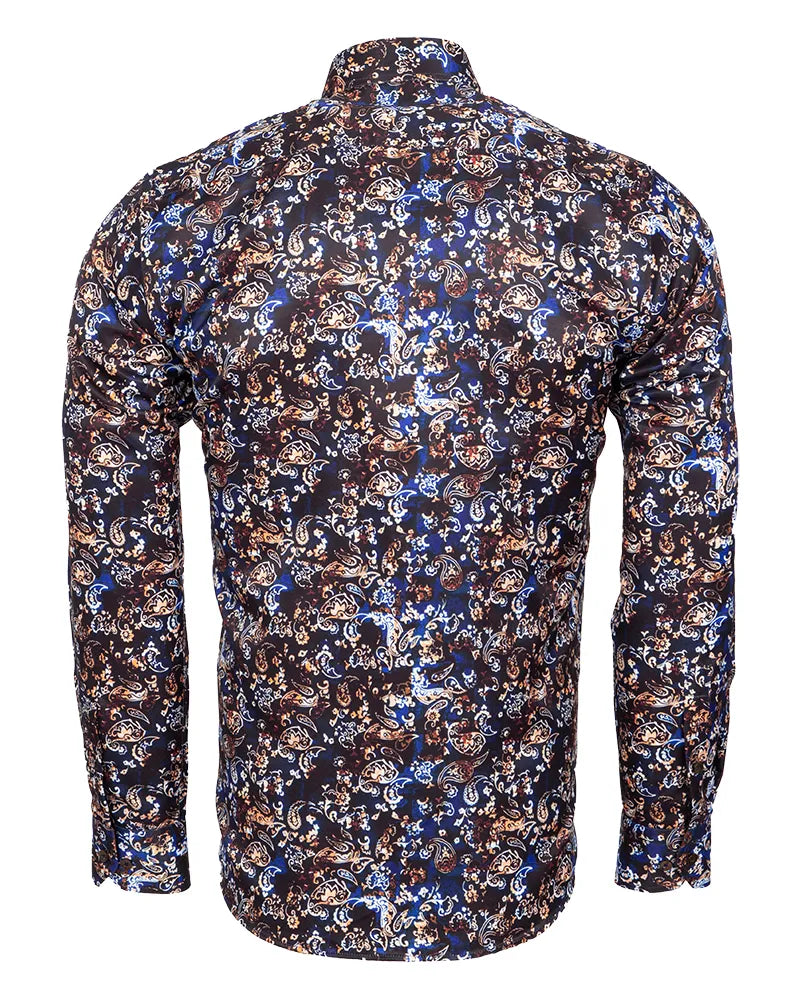 Brown Paisley Print Long Sleeve Men`s Shirt
