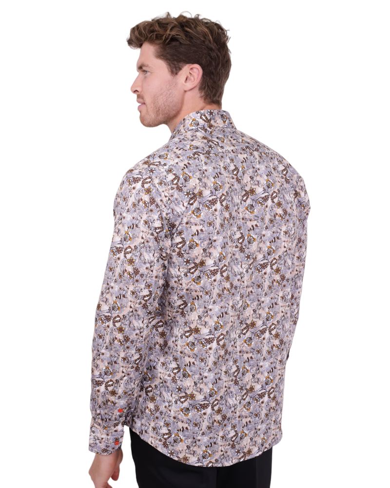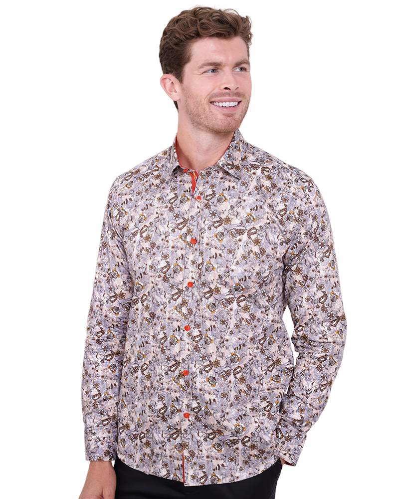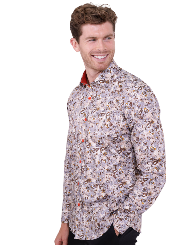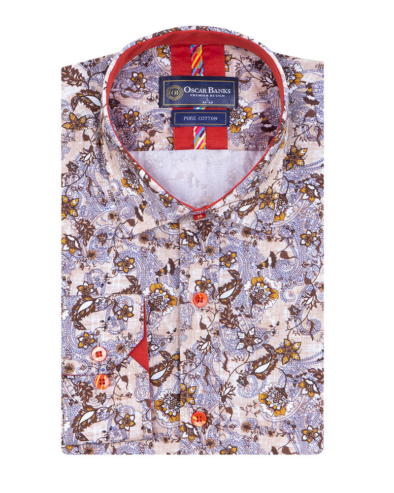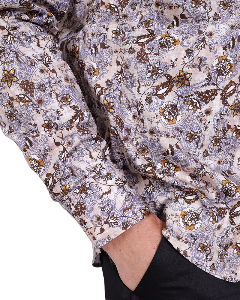 Elevate your wardrobe with the Brown Paisley Print Shirt, designed for the modern man. Crafted from 100% satin cotton, this shirt offers a luxurious feel and a stylish appearance.