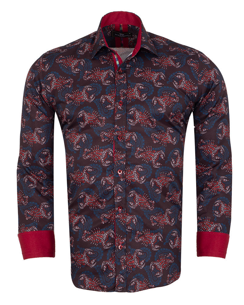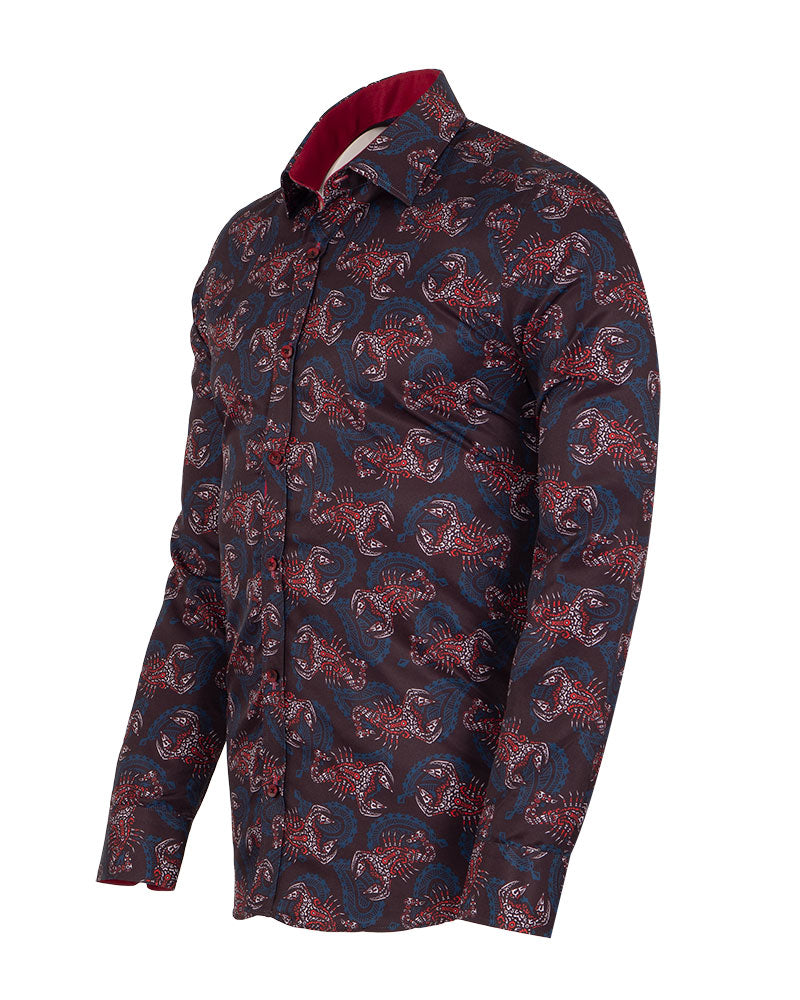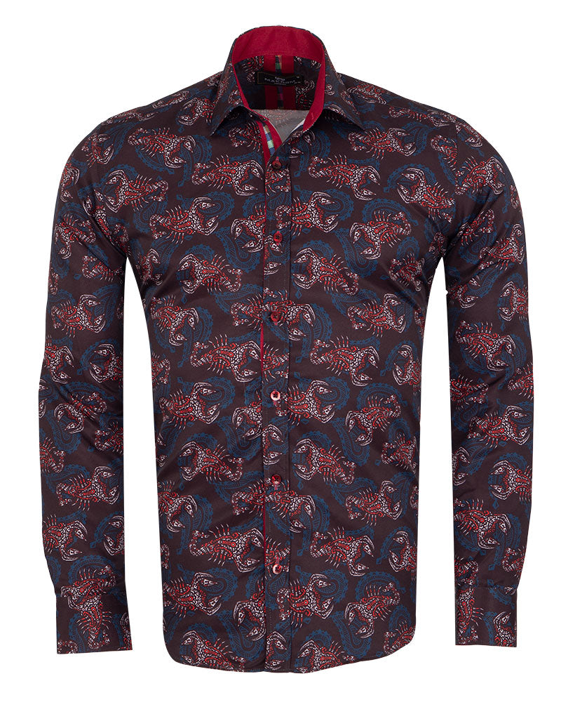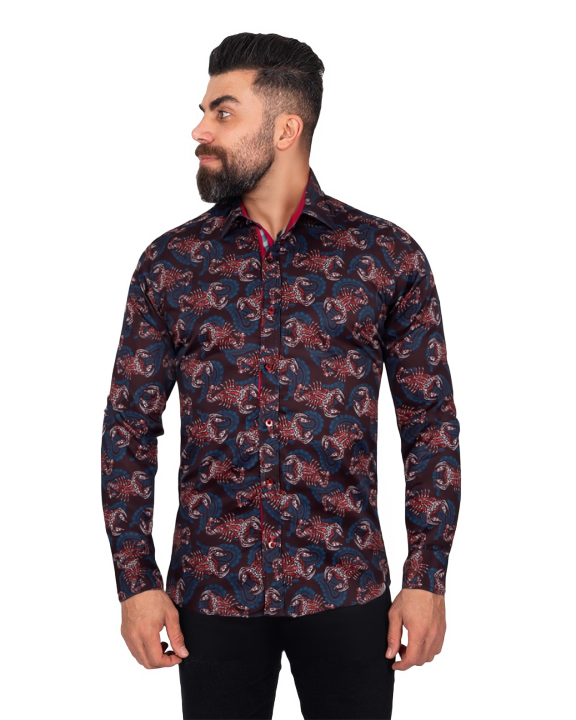 Discover the unique Brown Scorpion Print Shirt, a stylish addition to your wardrobe. This shirt features a striking scorpion print that adds a bold touch to any outfit.
