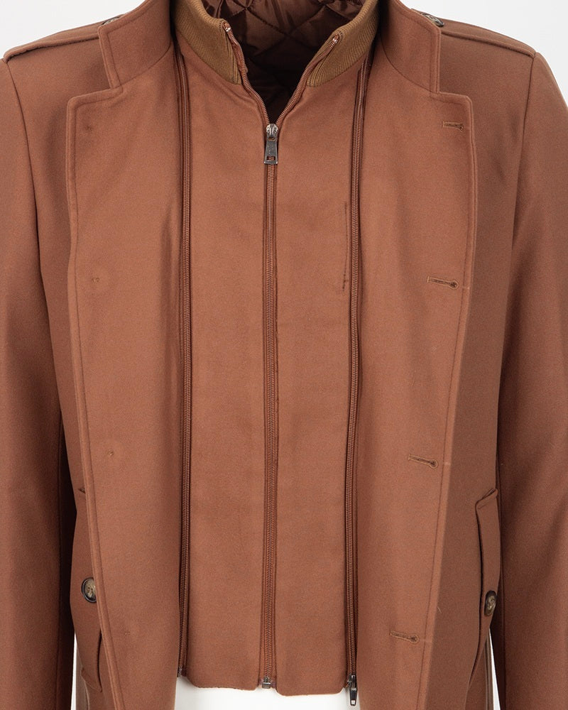 Brown Single Breasted Overcoat with Removable Quilted Insert