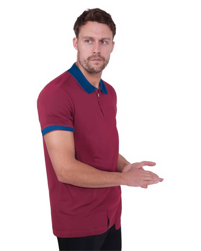 Burgundy Classic Polo T-Shirt With Contast Collar
