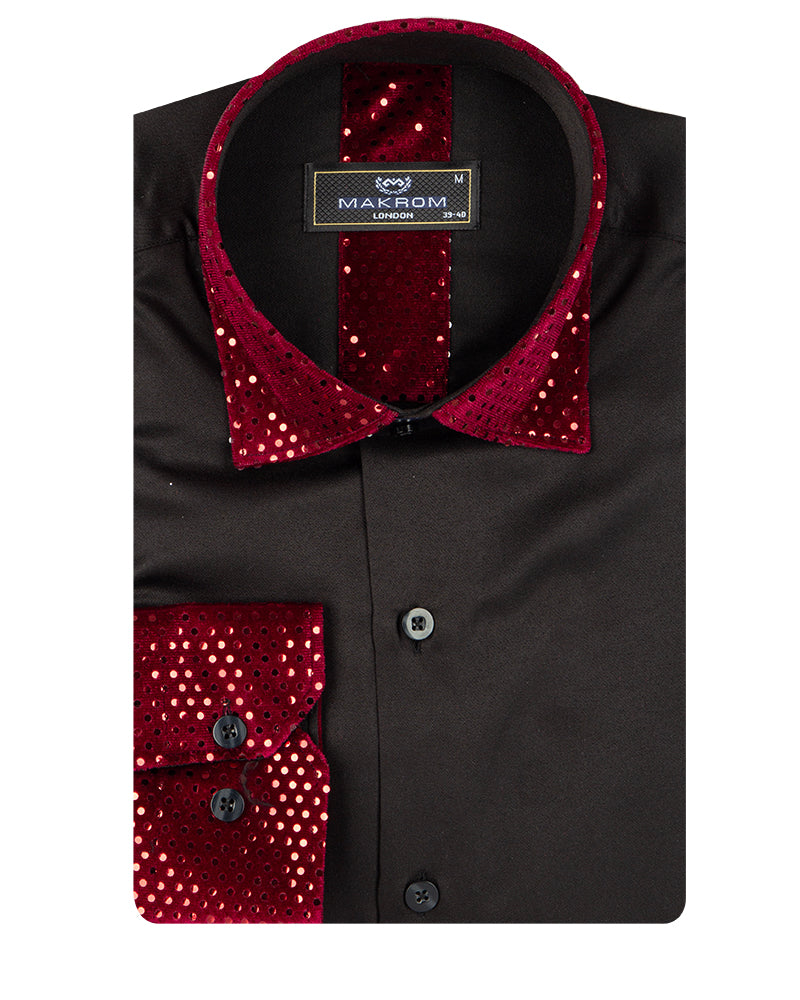 Burgundy Fashion Shirt with Sequin Collar & Sleeve Design