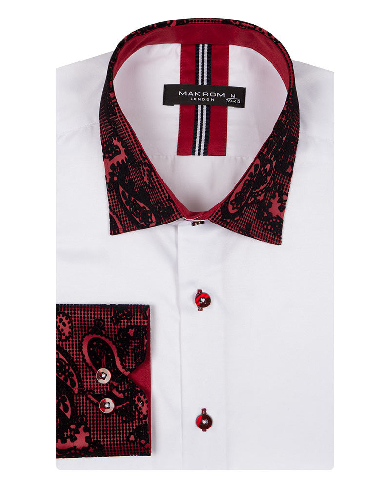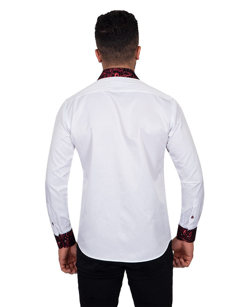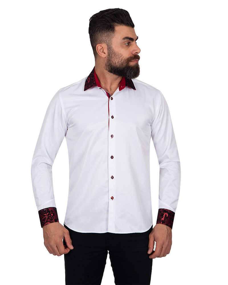 Burgundy Paisley Embroidery Design Collar & Cuff Shirt