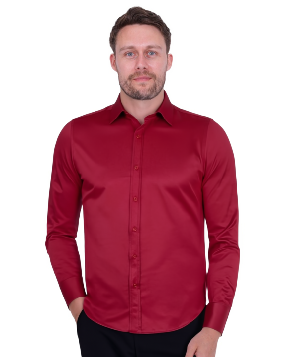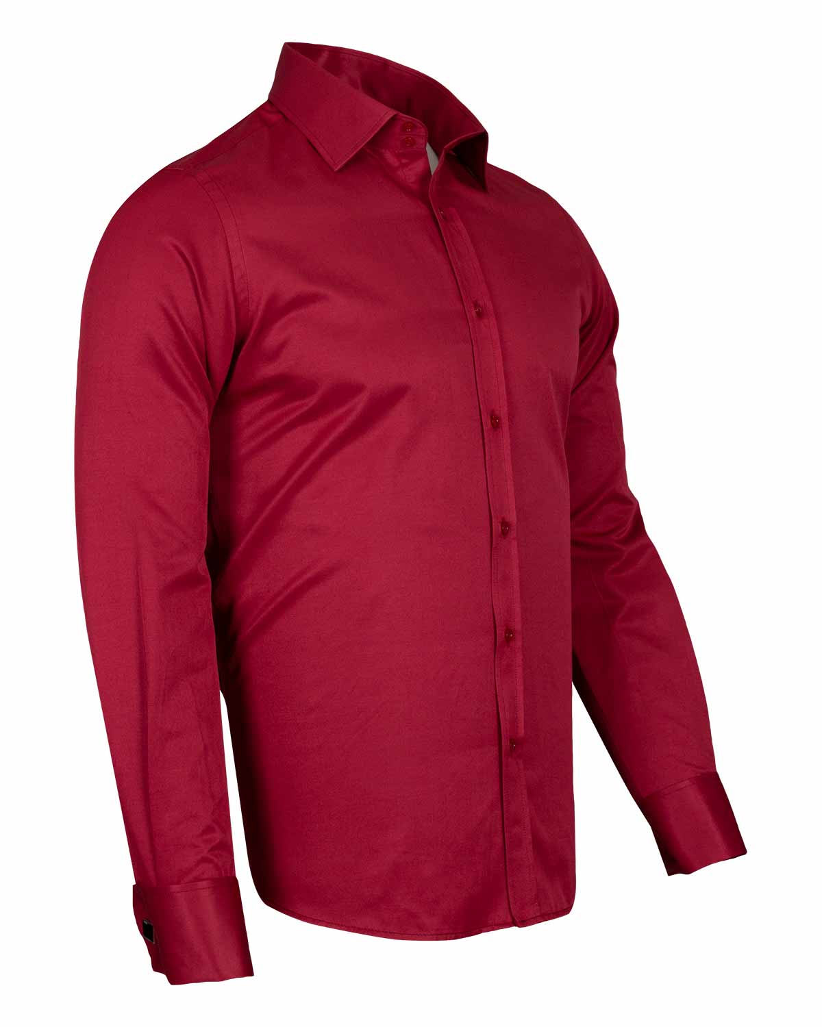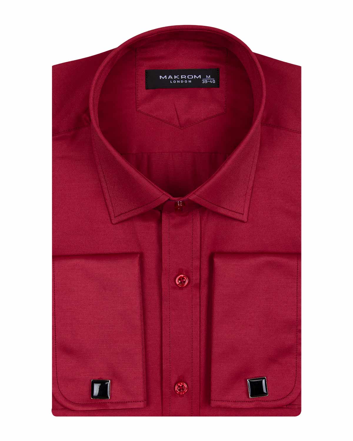 Introducing the Burgundy Plain Double Cuff Shirt, a timeless addition to any wardrobe. This classic shirt features a tapered fit, ensuring a sleek silhouette. Please refer to the size chart for the perfect fit.
