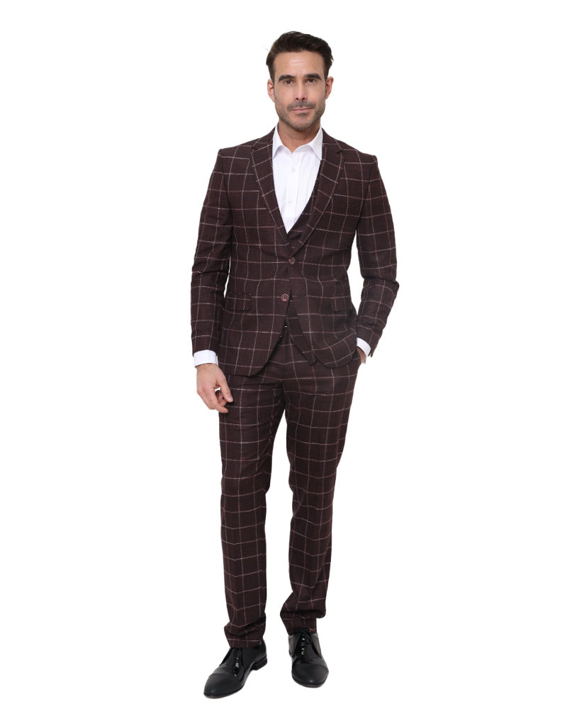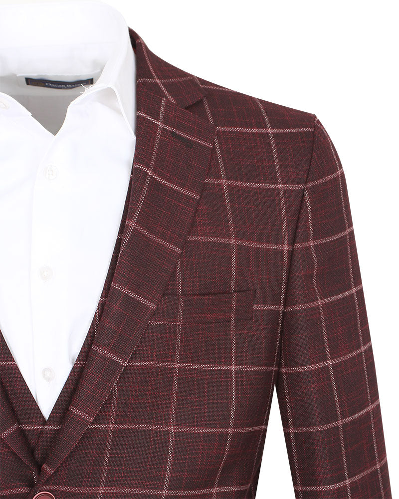 Introducing the Burgundy 3 Piece Check Suit, a stylish choice for any occasion. This Peaky Blinder style suit features a classic check pattern that adds a touch of sophistication to your wardrobe.