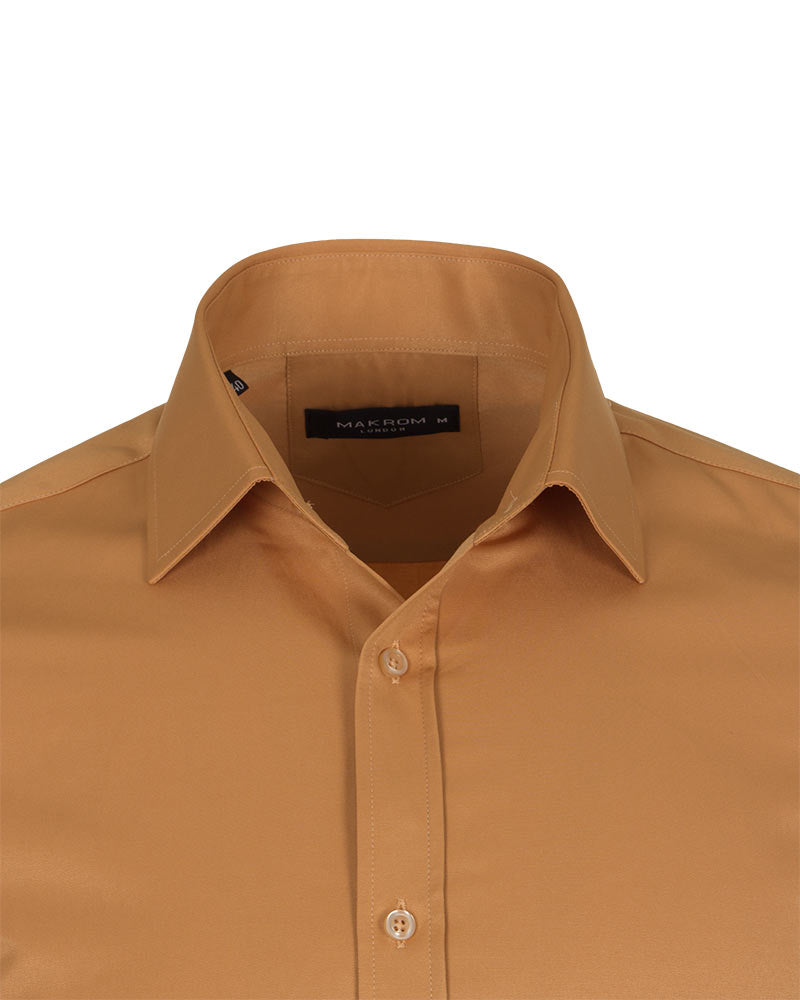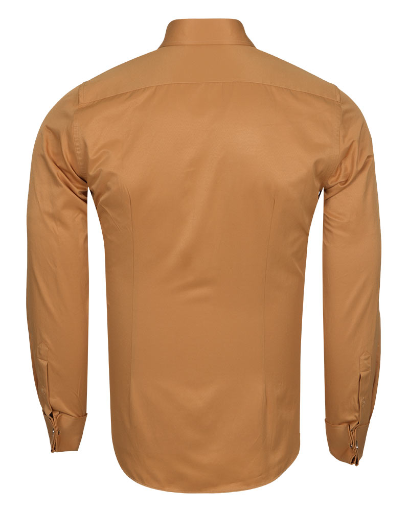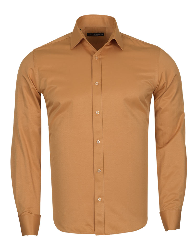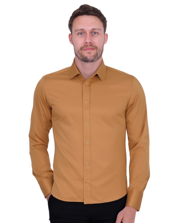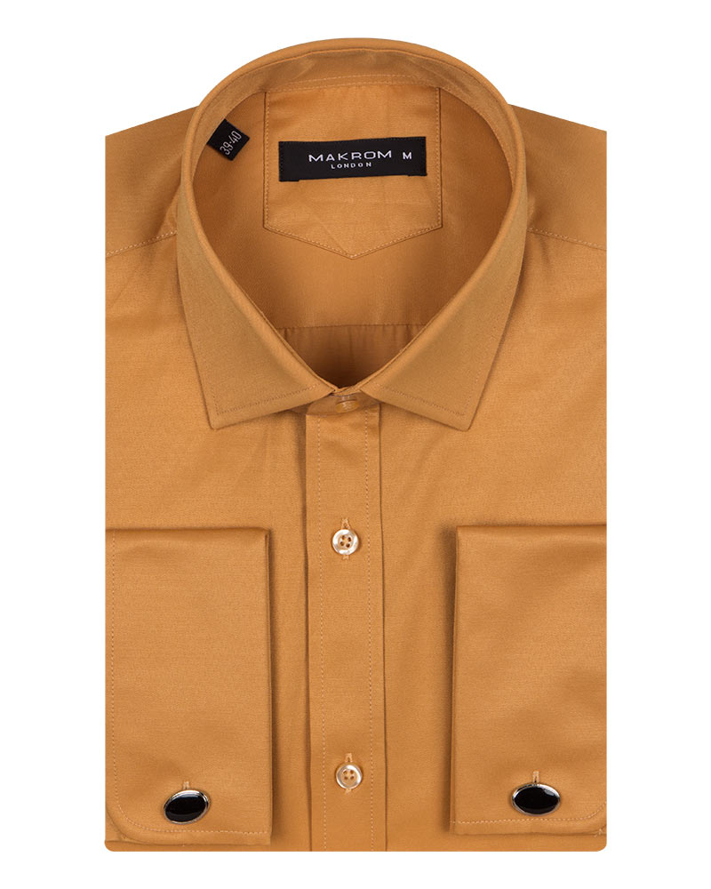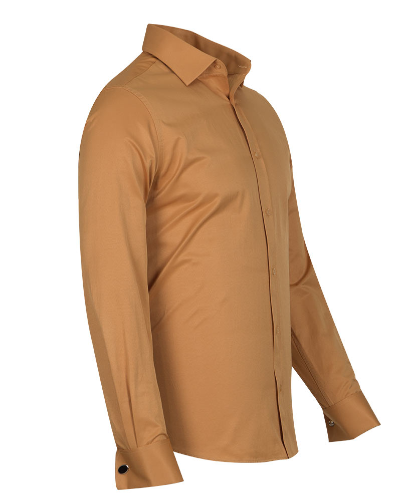 Introducing the Camel Classic Plain Double Cuff Shirt, a perfect blend of style and comfort. This shirt features a tapered fit, ensuring a sleek silhouette that flatters any body type. Please refer to the size chart for the best fit.