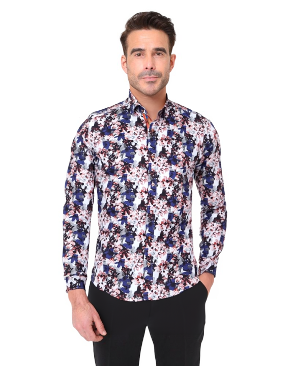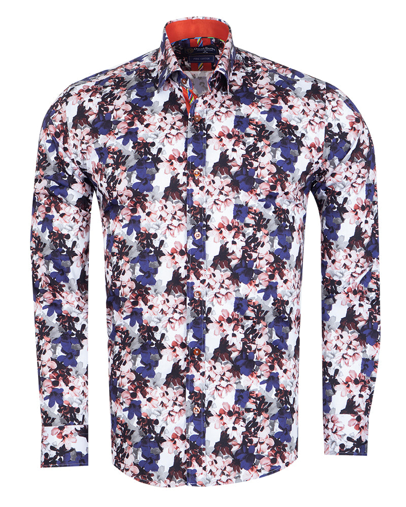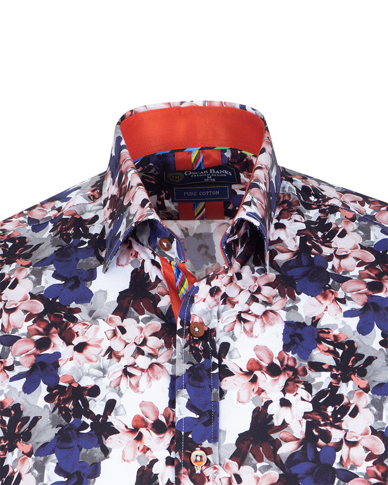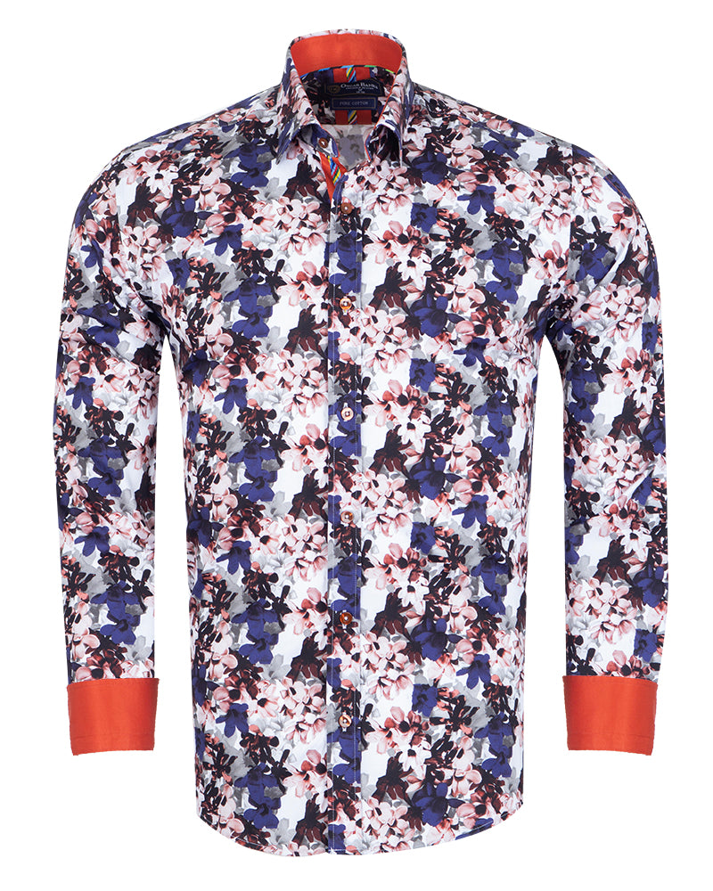 The shirt features a contrasting collar and cuff, adding a touch of sophistication to its playful design. With single cuffs and two-button adjustable cuffs, it ensures a perfect fit for any occasion.