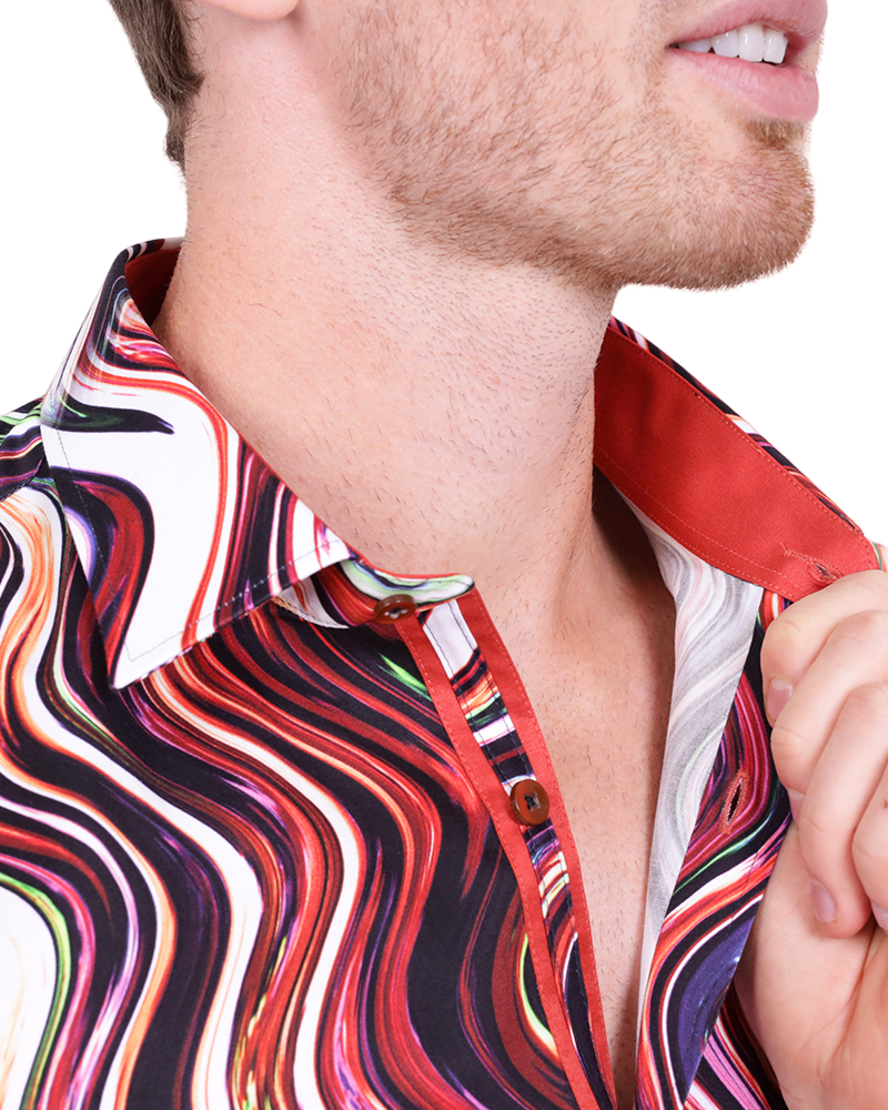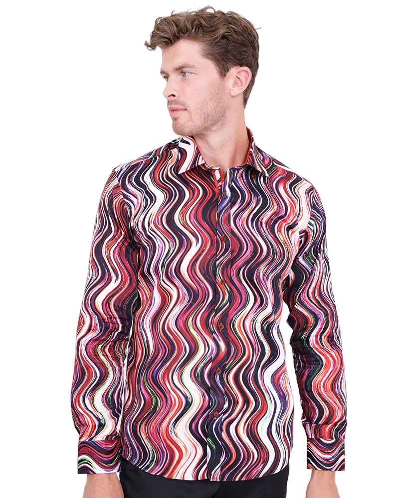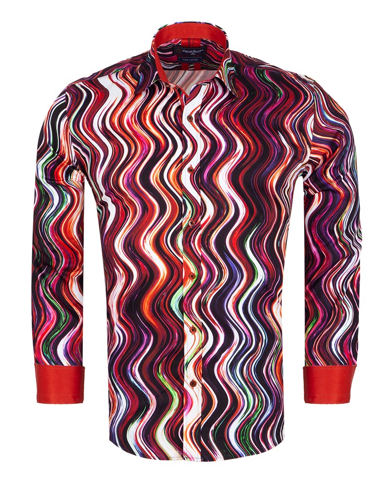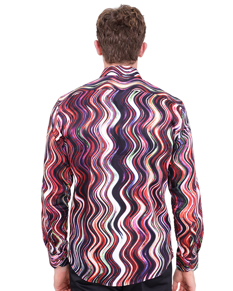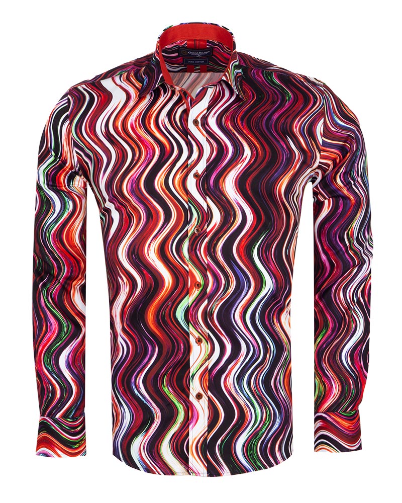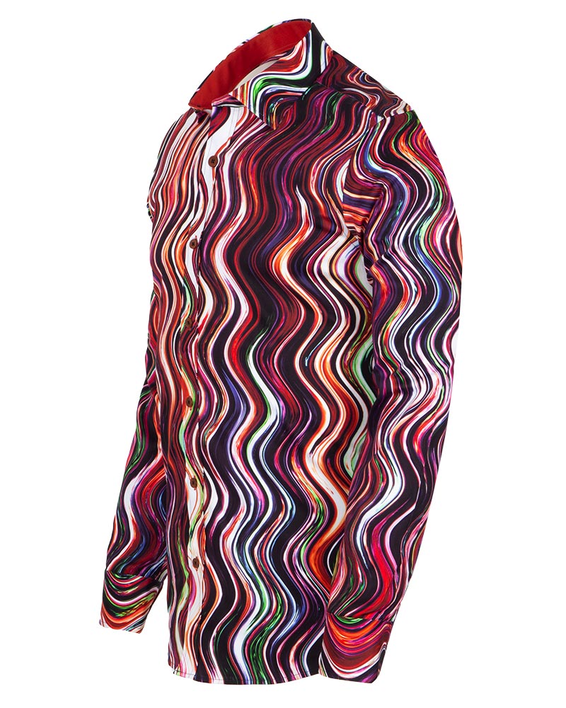 Colourful Wavy Lines Print Shirt with Matching Handkerchief