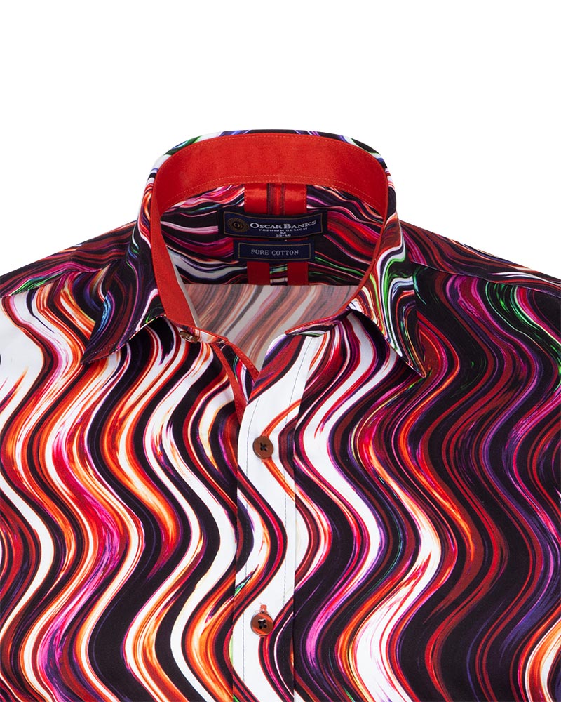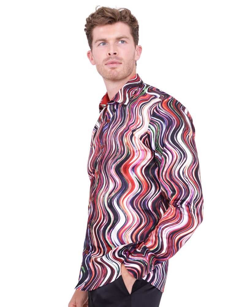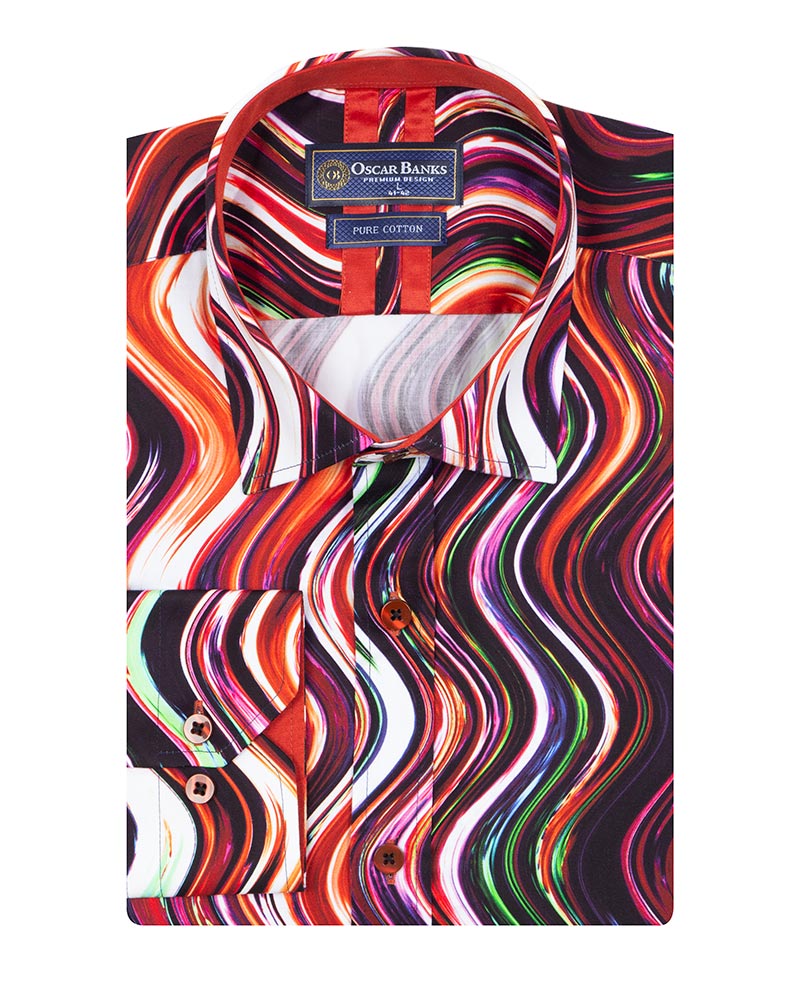 Introducing the Colourful Wavy Lines Print Shirt with Matching Handkerchief, a vibrant addition to your wardrobe. Crafted from 100% satin cotton, this shirt offers both comfort and style.