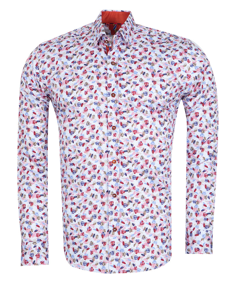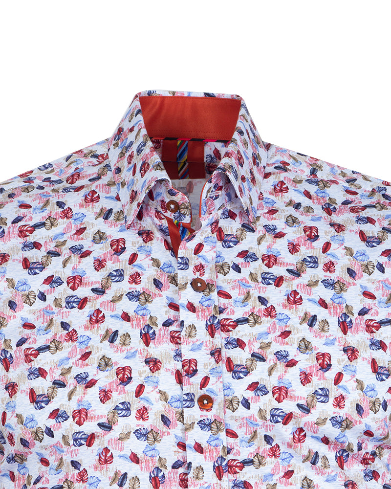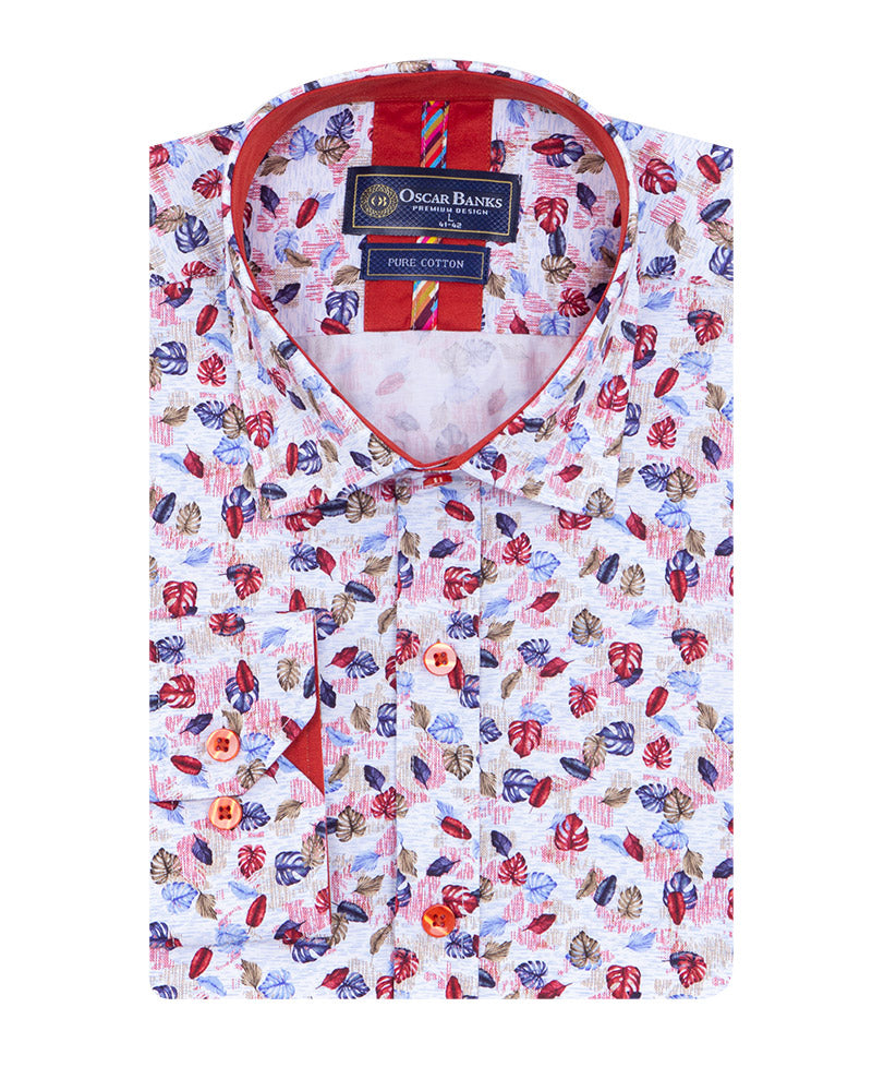 Colourful Leaf Print Shirt with Matching Handkerchief