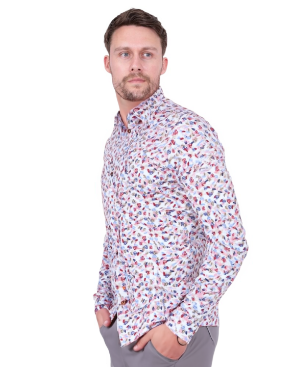 Introducing the Colourful Leaf Print Shirt with Matching Handkerchief, a perfect blend of style and sophistication. Crafted from 100% satin cotton, this shirt offers a luxurious feel and a vibrant design that stands out.