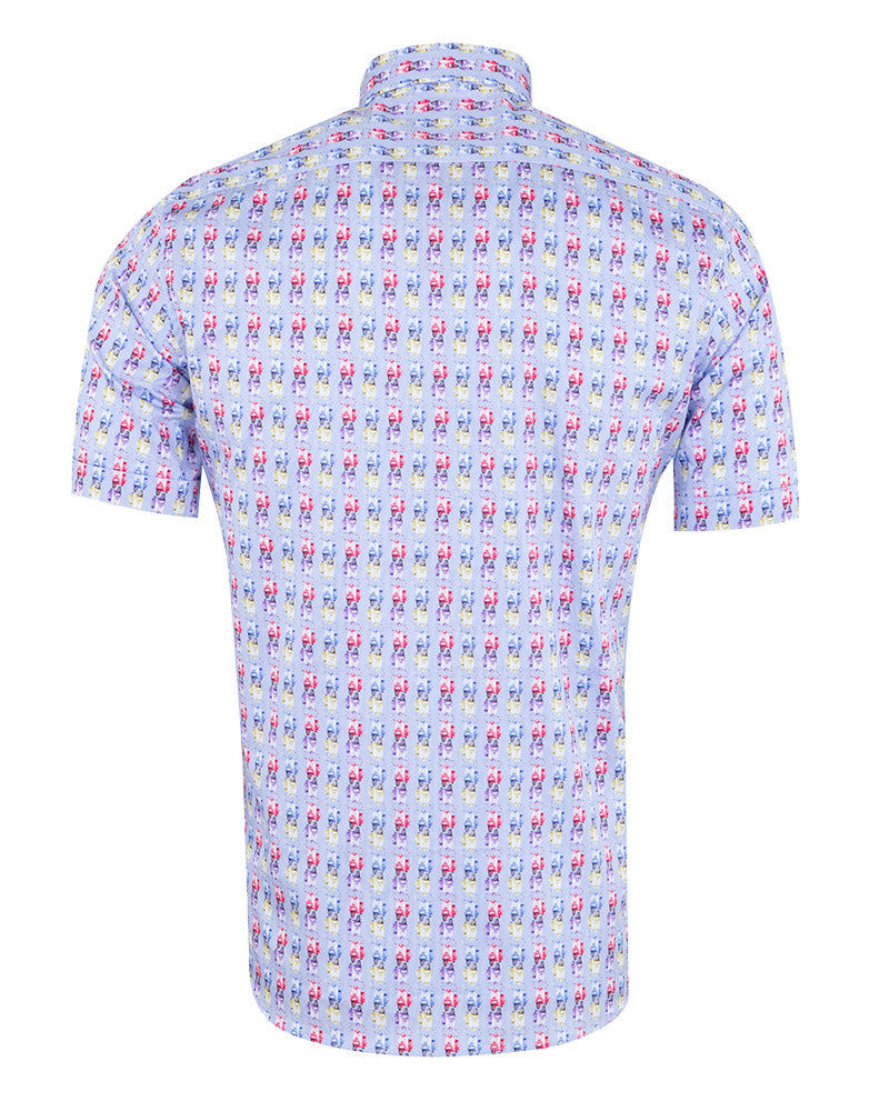 Discover the vibrant Colourful Vespa Print Short Sleeve Shirt, perfect for adding a touch of fun to your wardrobe. Made from 100% satin cotton, this shirt offers both comfort and style.