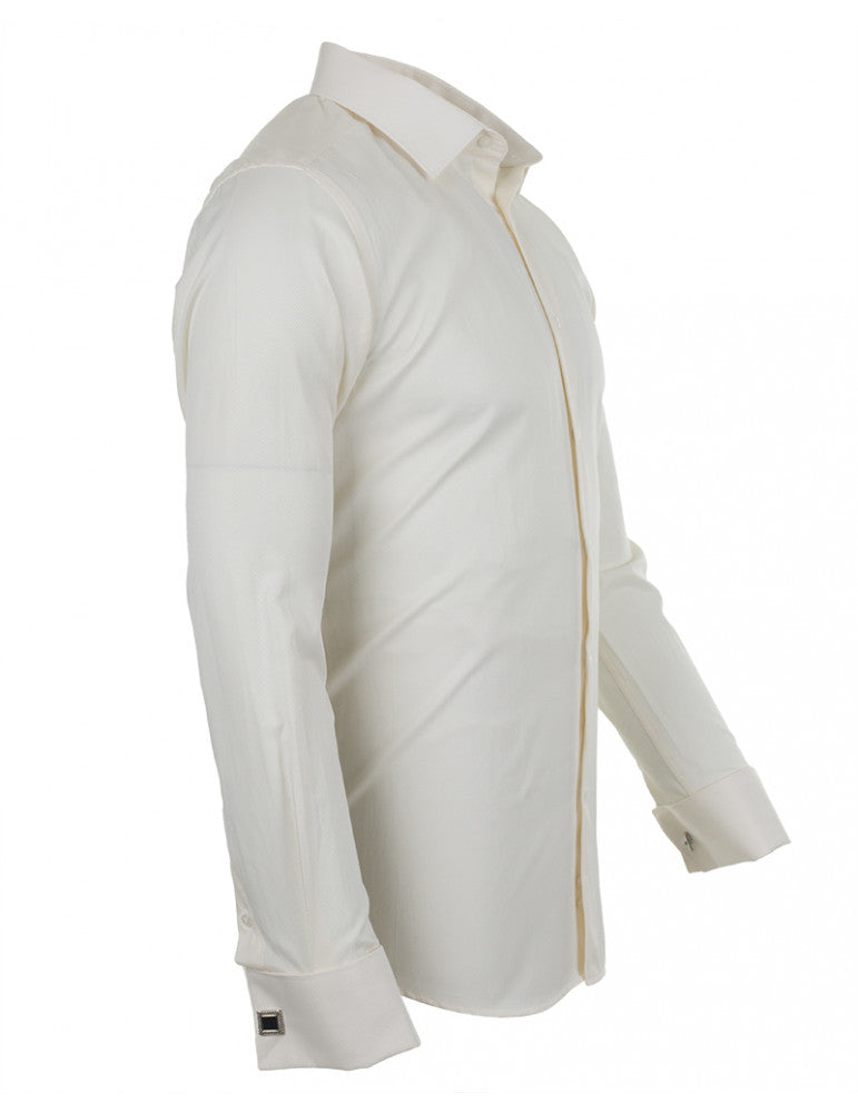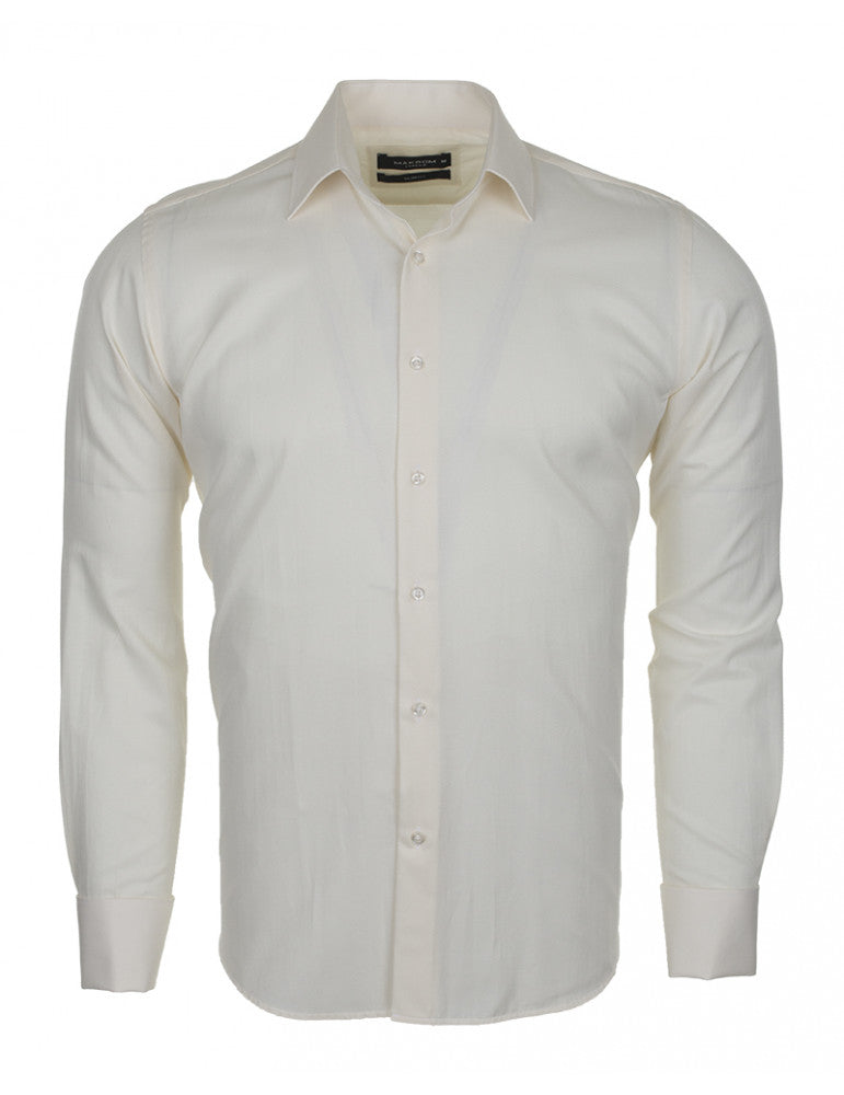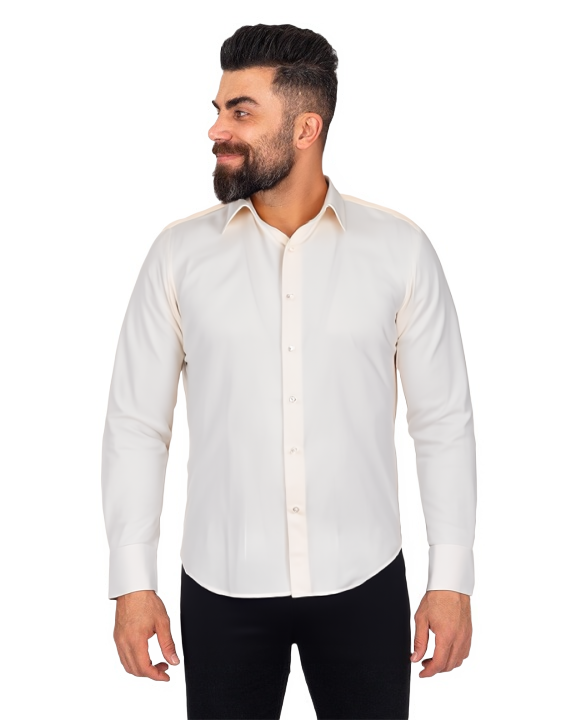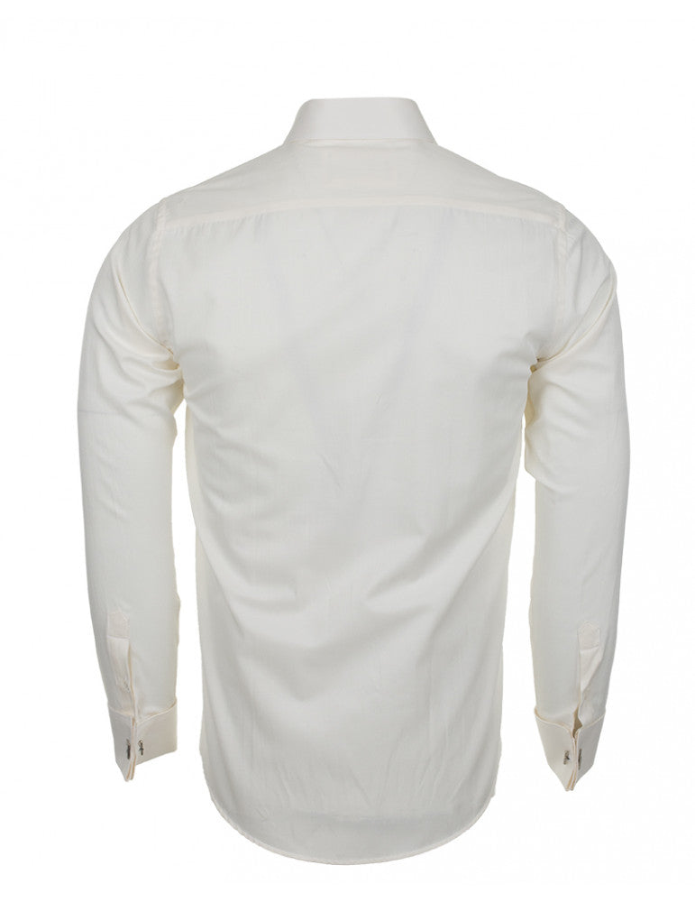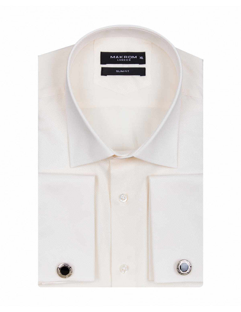 Cream Casual Twill Double Cuff Long Sleeve Shirt