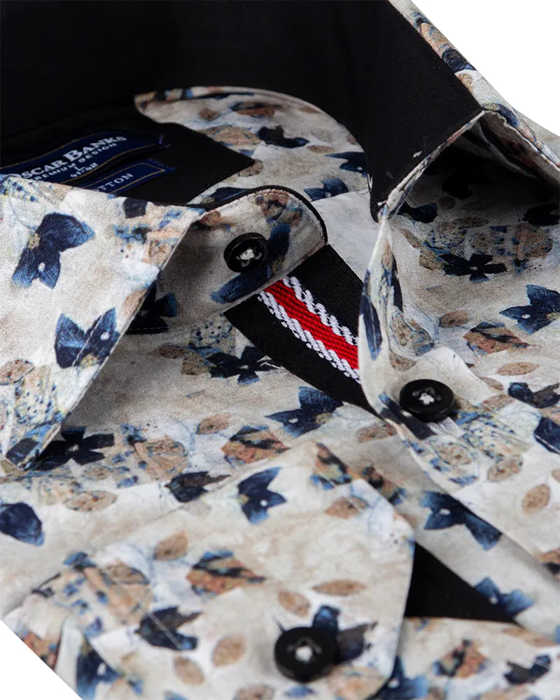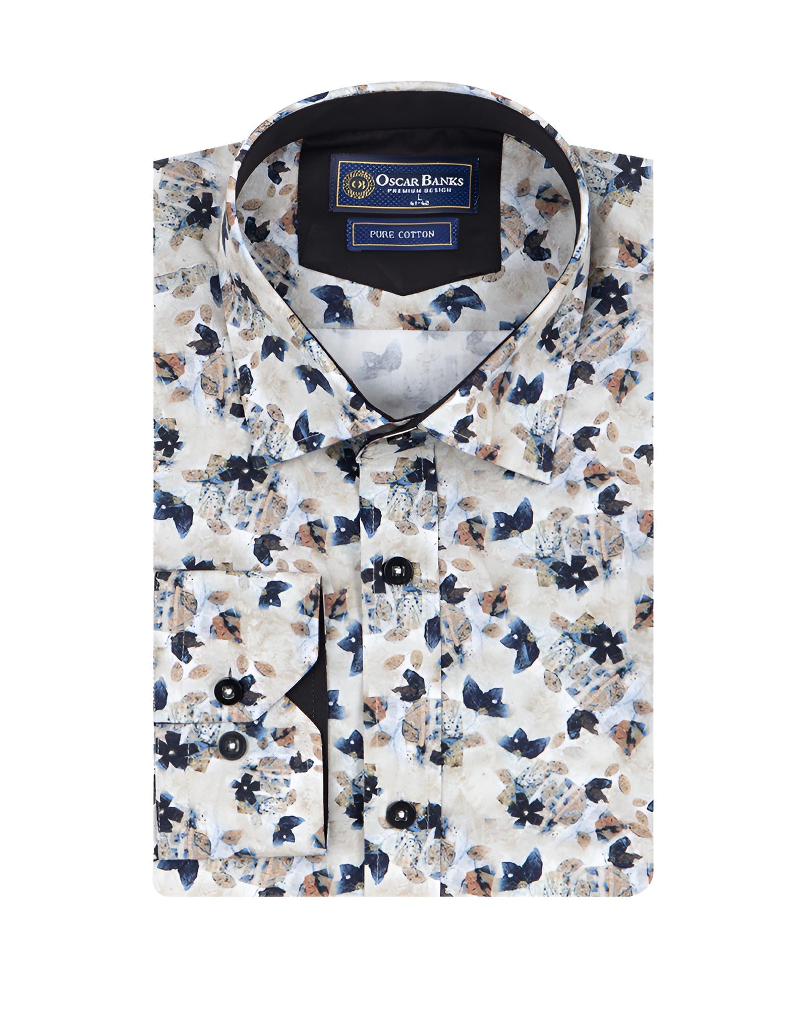 Introducing the Cream Flower Print with Matching Handkerchief, a truly unique addition to your wardrobe. Crafted from 100% satin cotton, this shirt offers a luxurious feel while ensuring comfort throughout the day.
