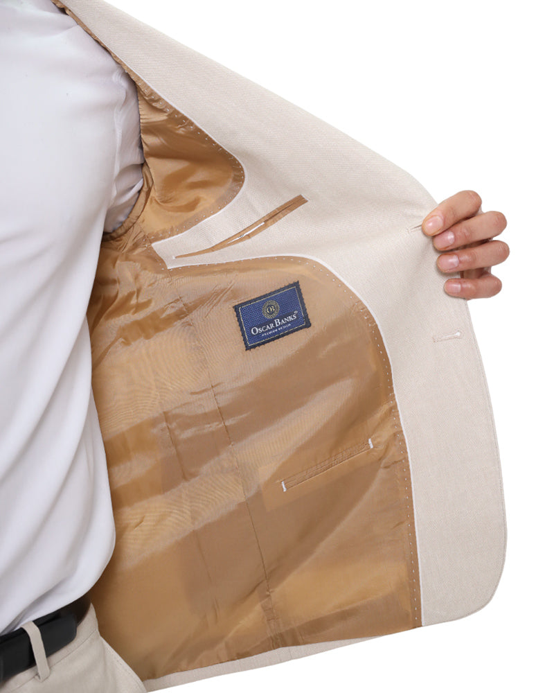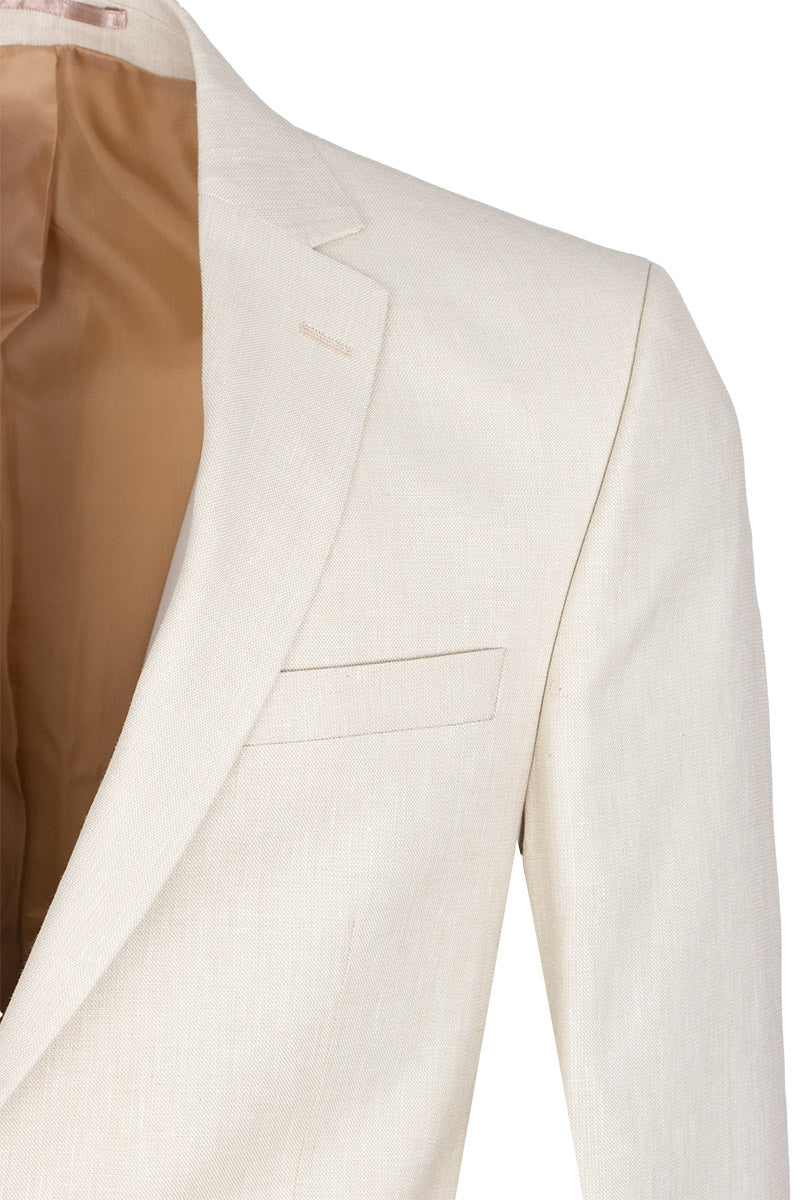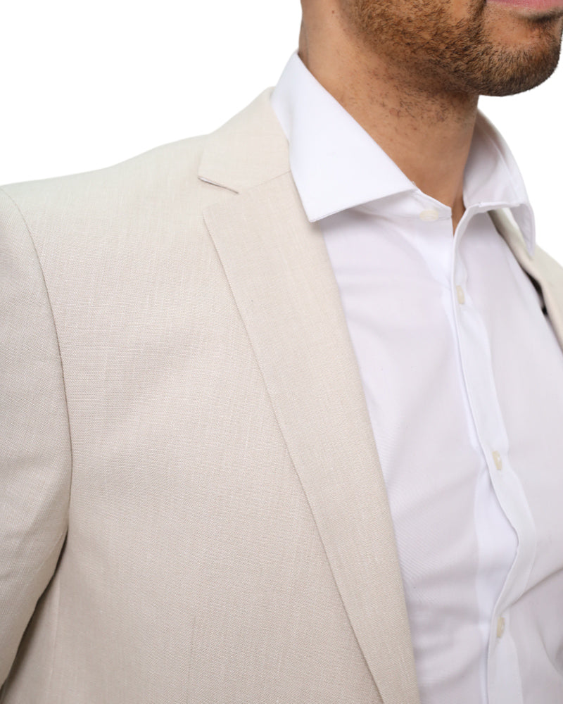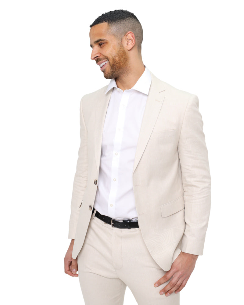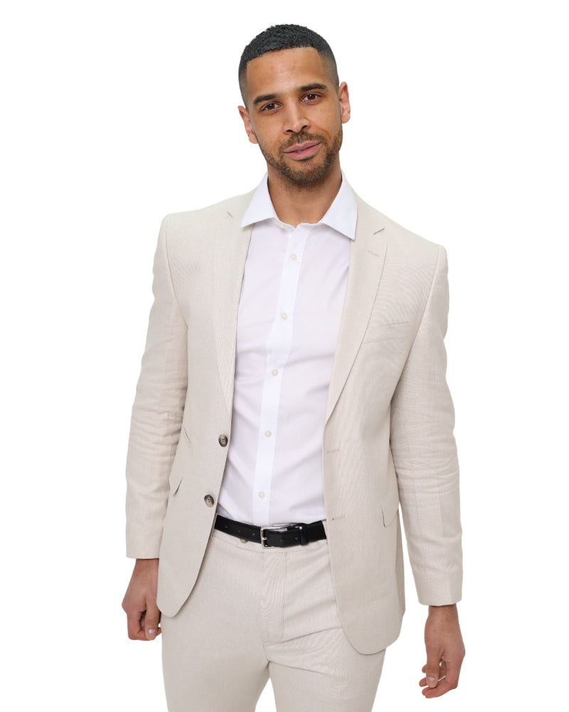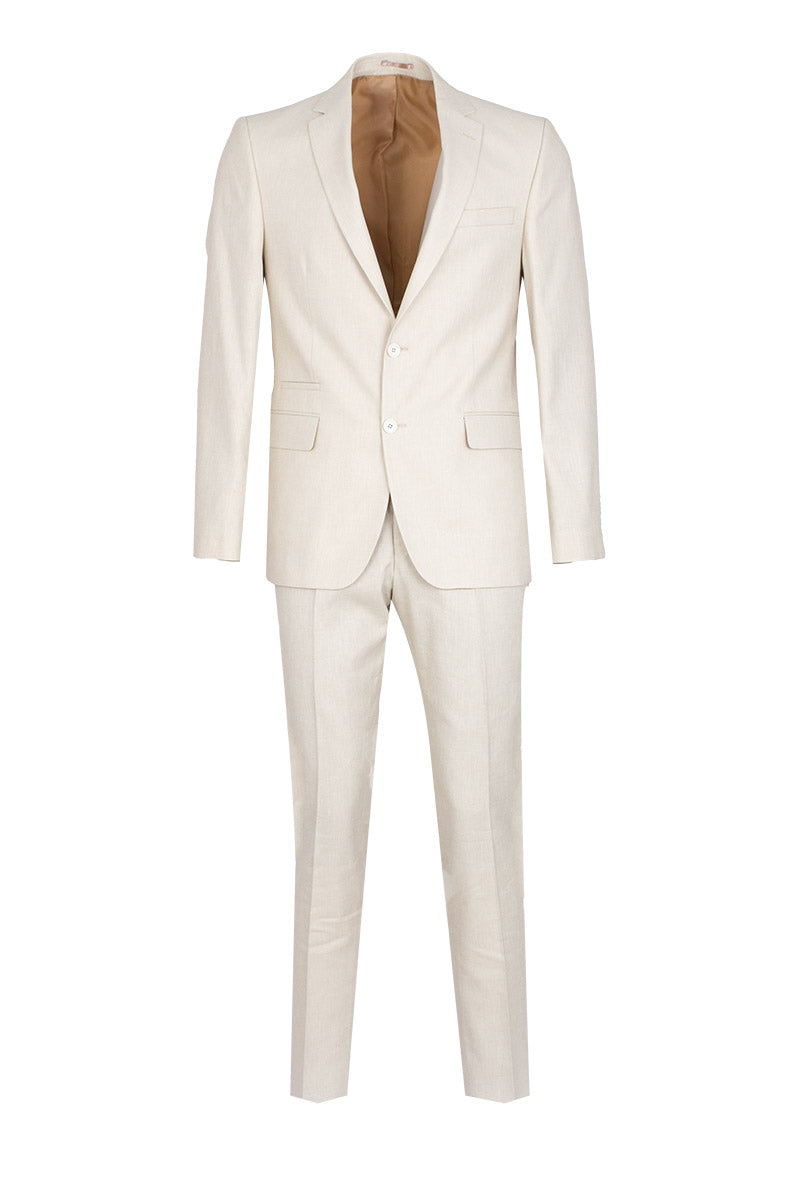 Introducing the Cream Linen 2 Piece Suit, a perfect blend of style and comfort. This classic suit is crafted from a high-quality mix of 70% linen and 30% polyester, ensuring breathability and durability.