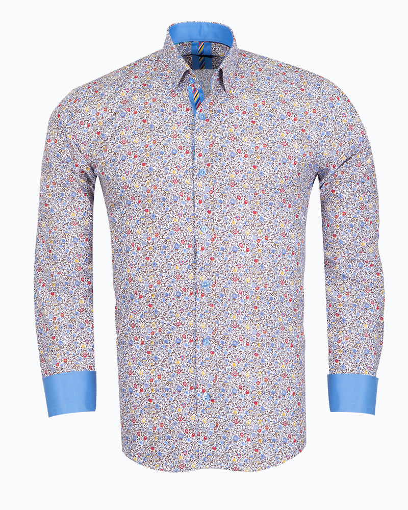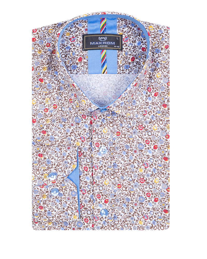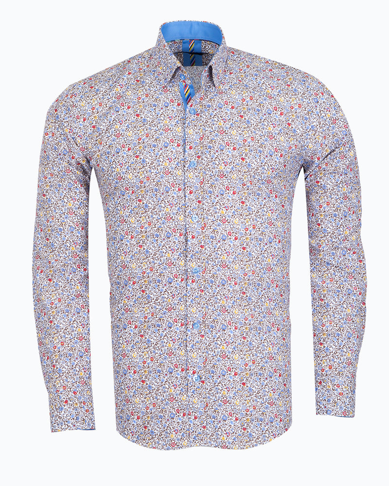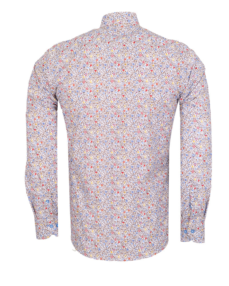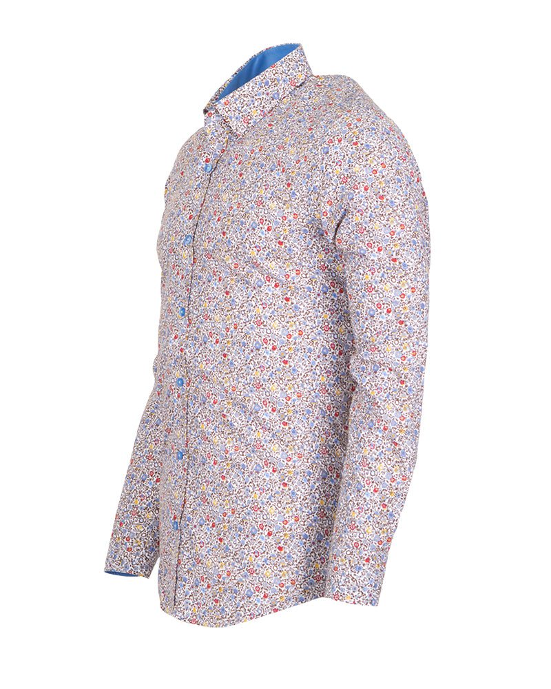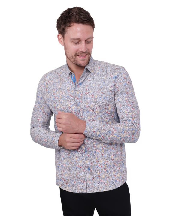 Introducing the Cream Micro Flower Print Men's Shirt, a stylish addition to any wardrobe. This shirt features a charming miniature poppy floral print that adds a touch of elegance to your outfit.