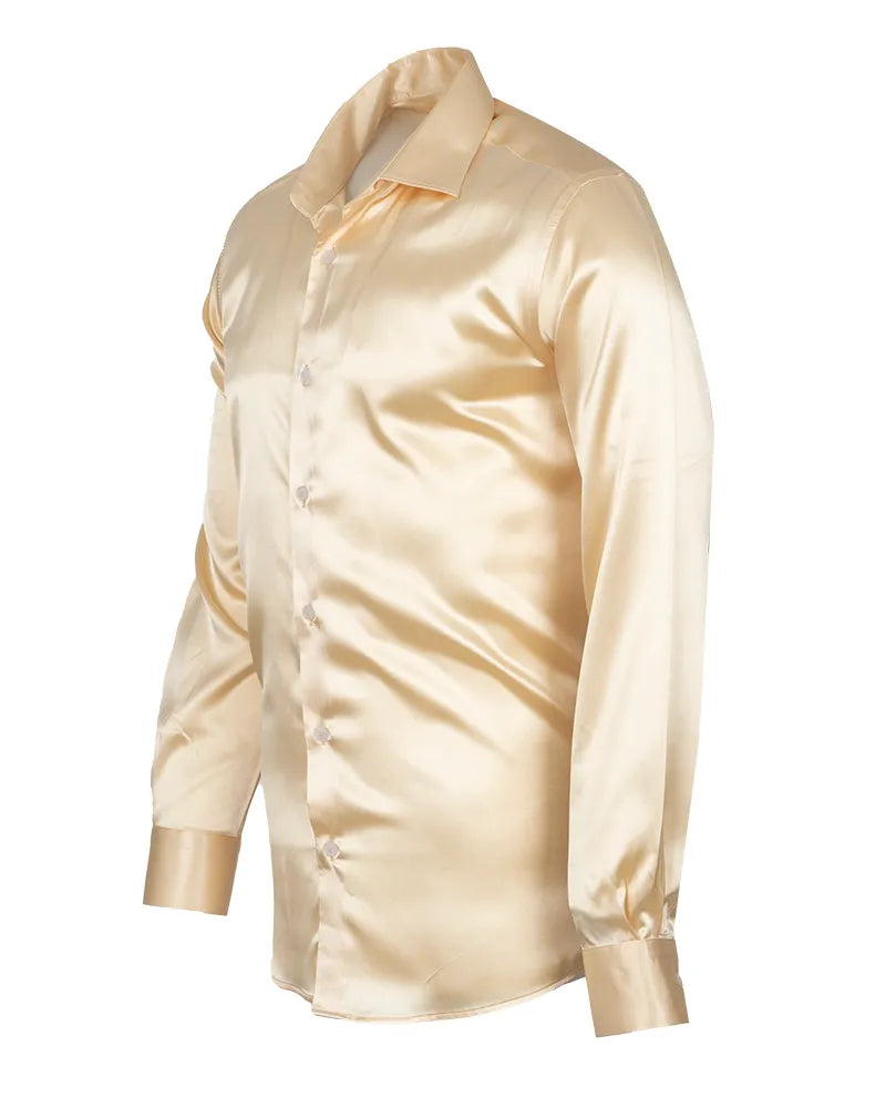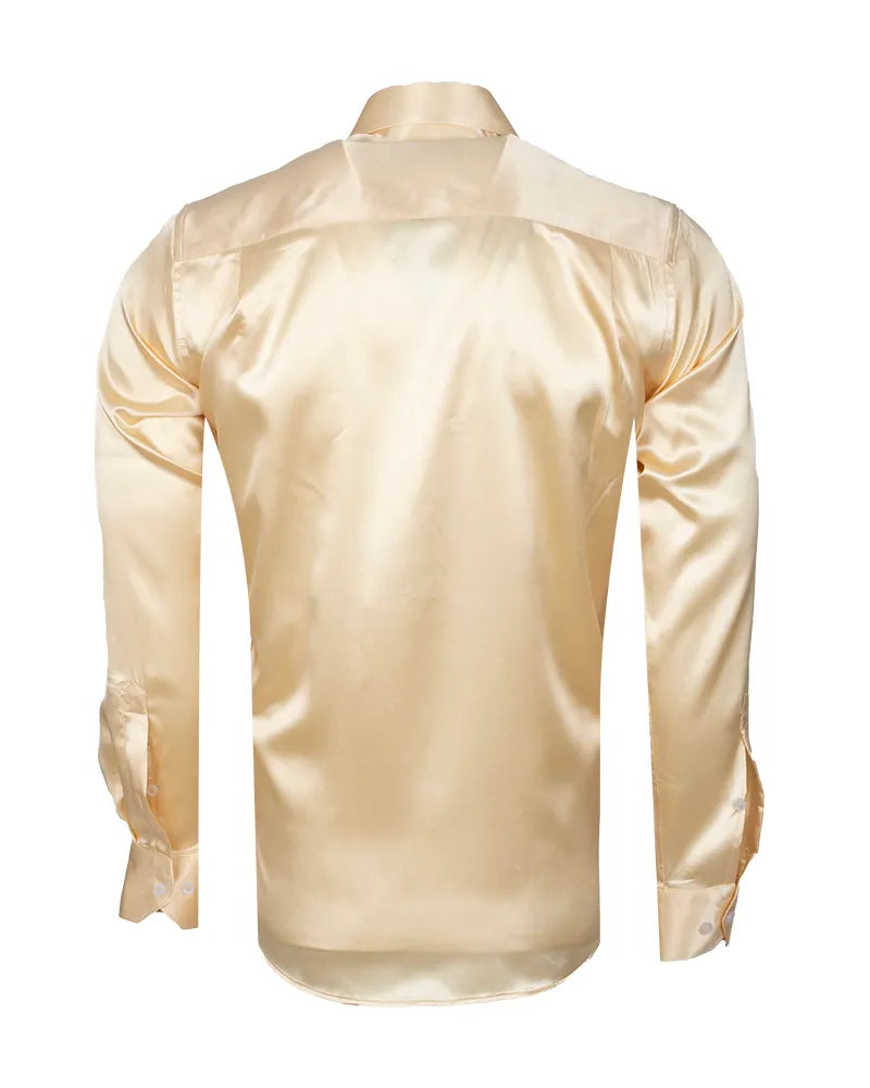 Cream Shiny Plain Satin Classic Men’s Shirt