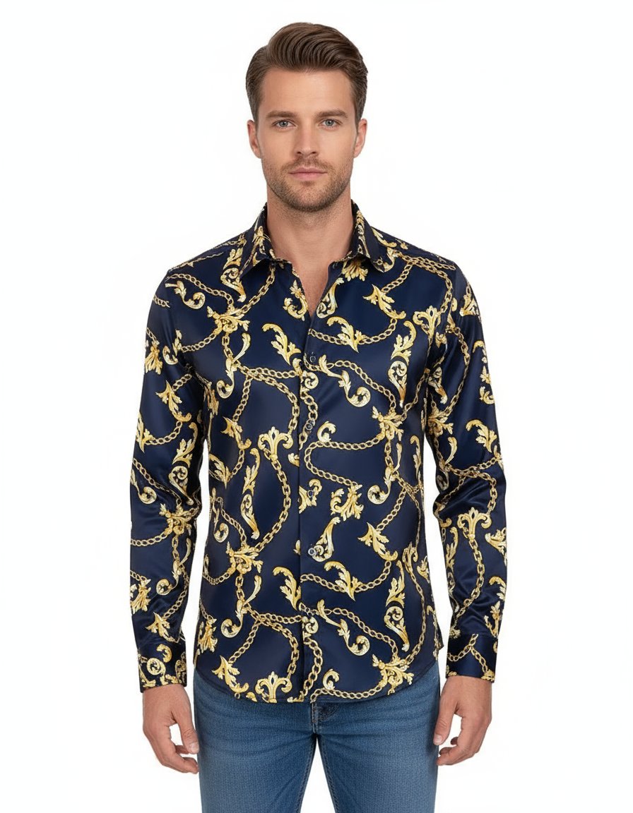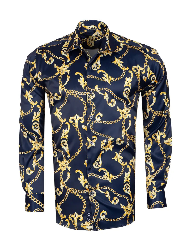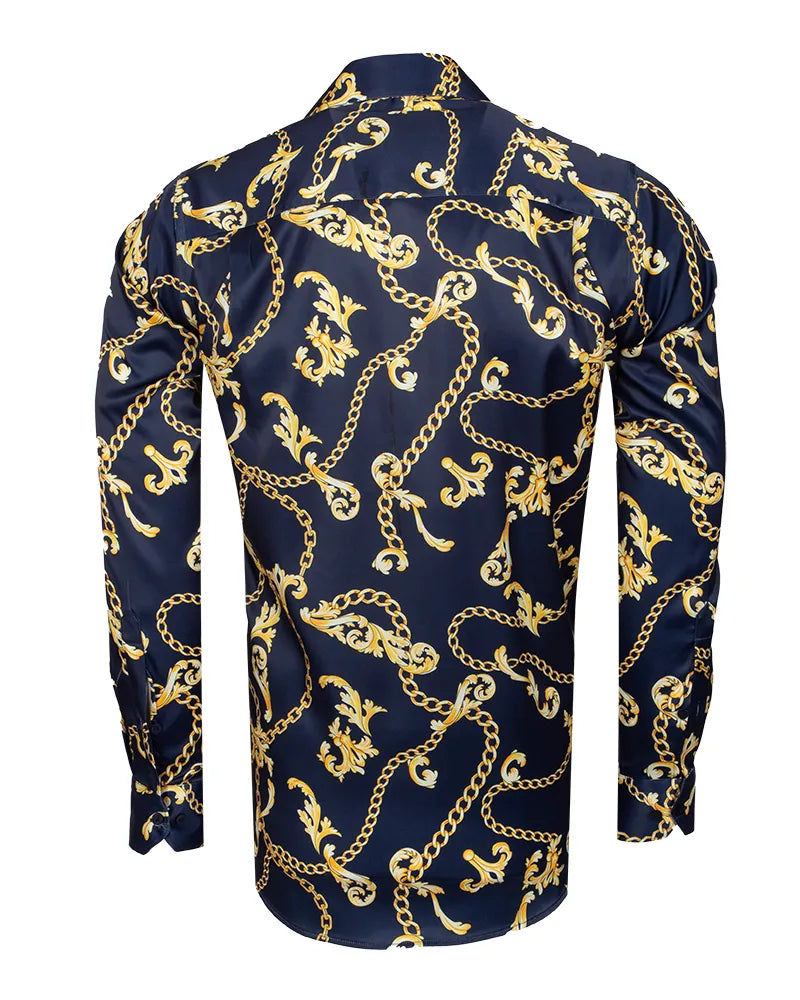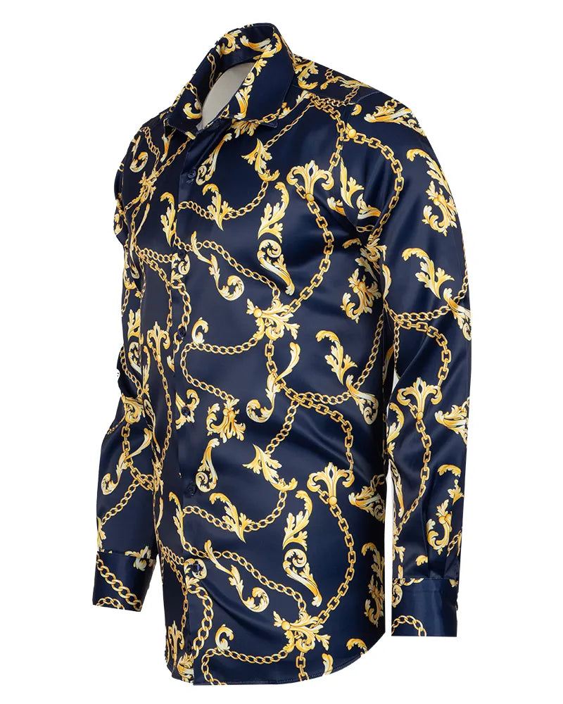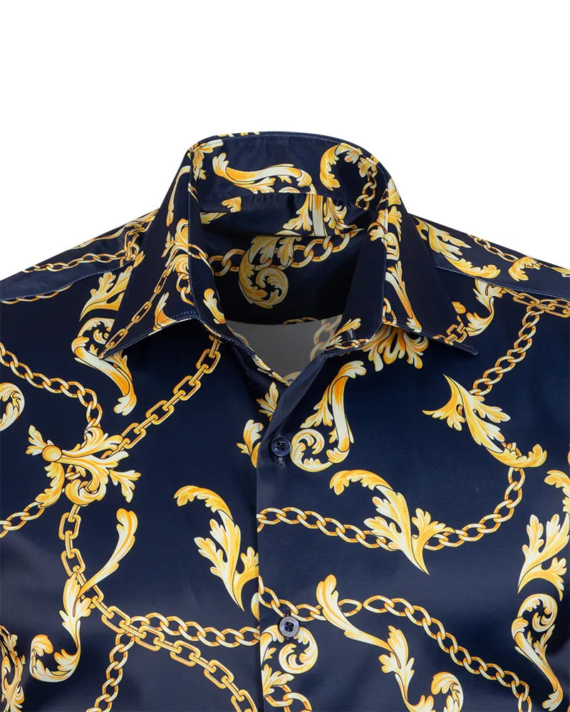 Dark Blue Baroque Chain & Paisley Print Men`s Shirt