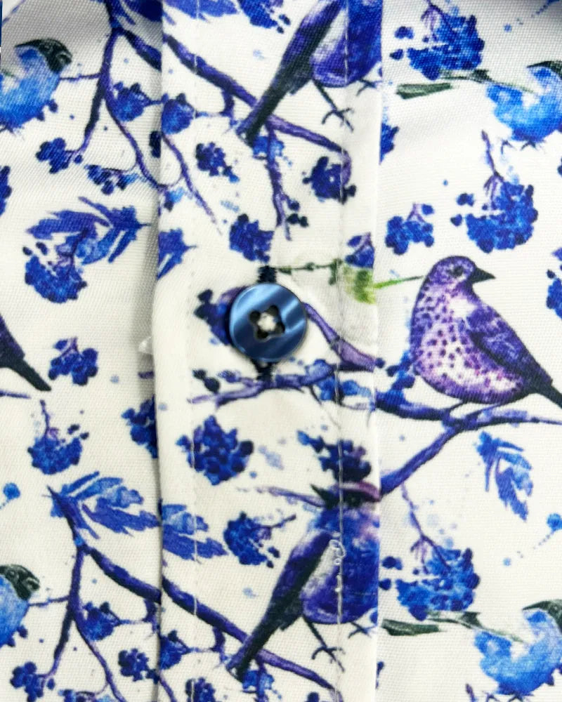 Discover the elegance of the Lilac Birds in Tree Print Long Sleeve Shirt, a perfect blend of style and comfort. This unique shirt features a stunning bird print that adds a touch of nature to your wardrobe.